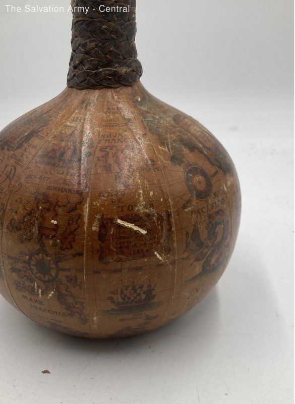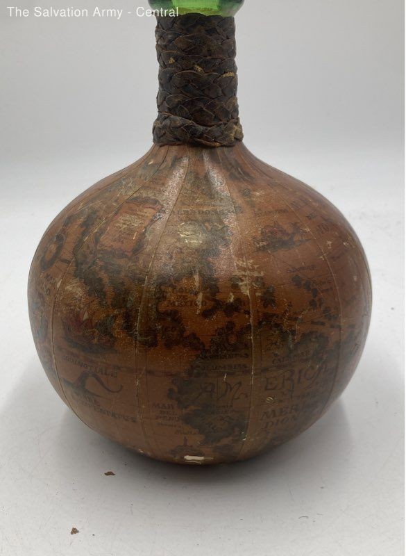 Title: Collectible Multicolor Leather Bound Glass World Map Wine Bottle Decanter Brand : Unbranded Item : Decanter Condition : Used All net proceeds will support The Salvation Army - Adult Rehabilitation Centers. Thank you for your support! Please review our policies below: Combined Shipping Flat-rate shipping policy : Larger items are $14.99 for the first item, plus $6 for each additional item. Smaller items are $9.99 for the first item, plus $1 for each additional item. Limit : Combined shipments can include up to 20 items. Exceptions : Items with calculated shipping (e.g., large or bulky items, instruments, artwork) cannot be combined. Customer Support Availability : Monday - Friday, 8:00am - 4:00pm EST. Contact : Reach out via eBay or customer service messaging for assistance. Functionality Condition : All items are sold as is and have not been tested. If you have any specific questions or need further assistance, feel free to ask! 😊