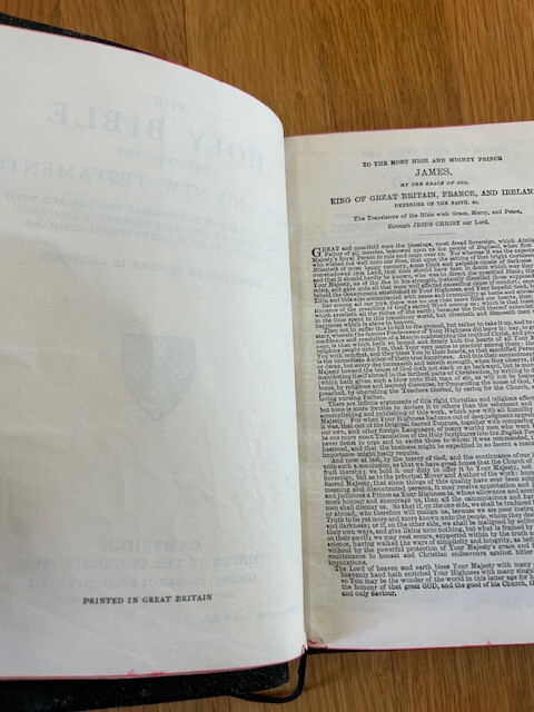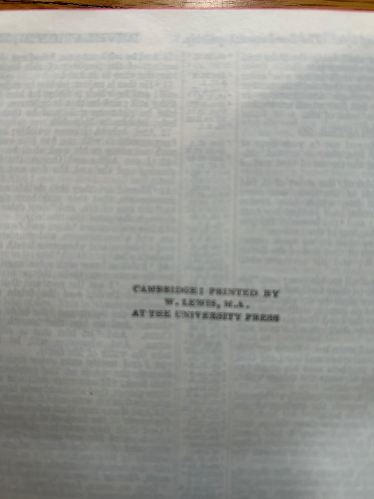 Gift inscription dated April 28 1937(the 3rd photo). The Bible was printed by Walter Lewis(the 4th photo) who served as Cambridge printer from 1923 to 1945. So, the Bible was published anytime between 1923 and 1937. Size: 7 X 5 X 1 inch 921 pages plus Index and Maps.
