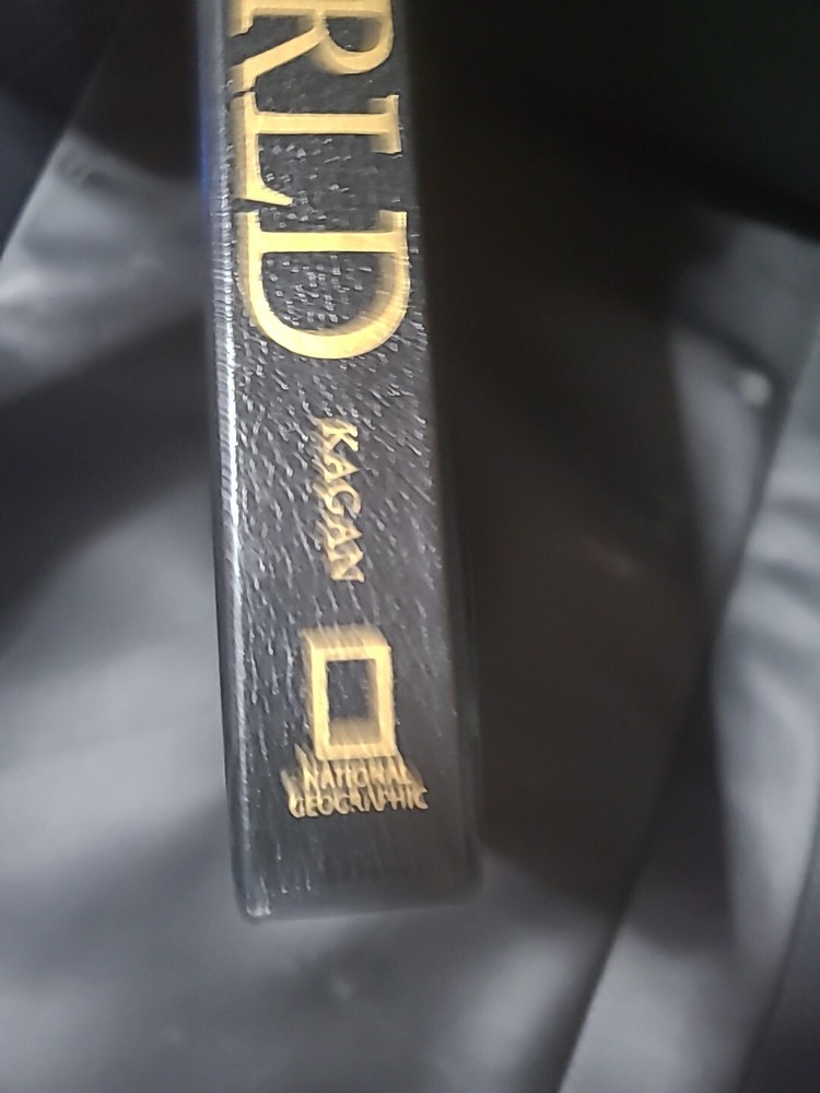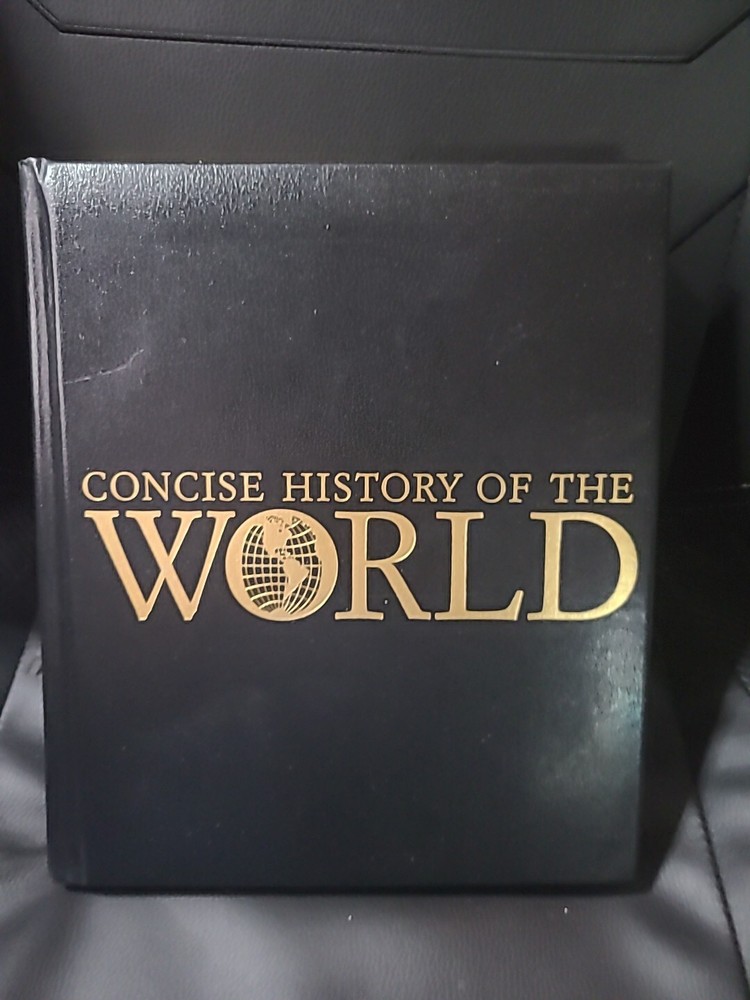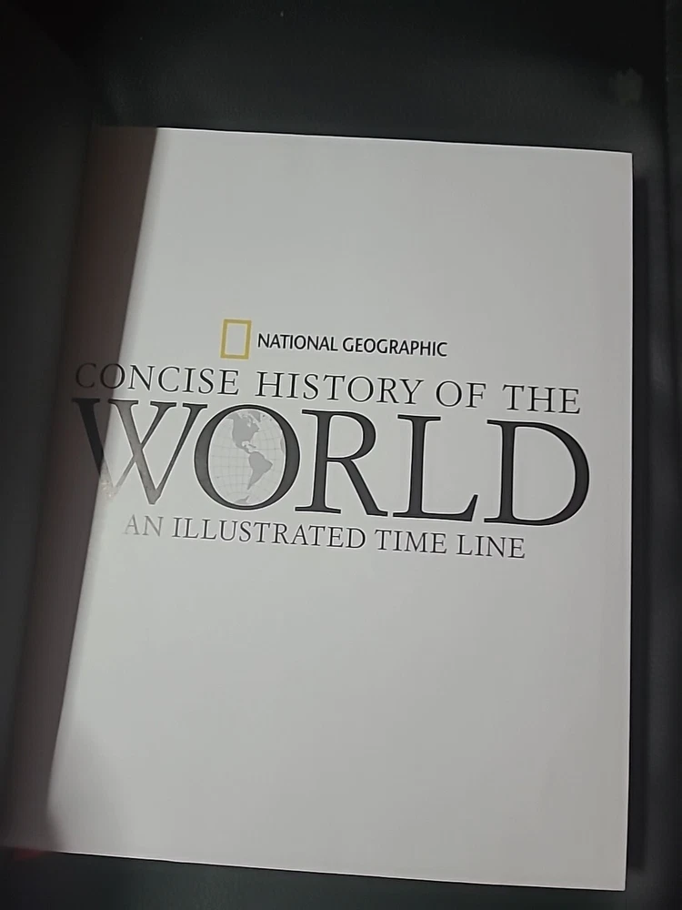The product is a "Concise History of the World" Collector's Edition published by National Geographic in 2006. It is a leather-bound almanac aimed at young adults and adults, covering historical events worldwide. The book features illustrations by Meredith Wilcox and Dan O'Toole, along with a map. This deluxe edition is sealed and in new condition, making it a valuable addition to any history enthusiast's collection.