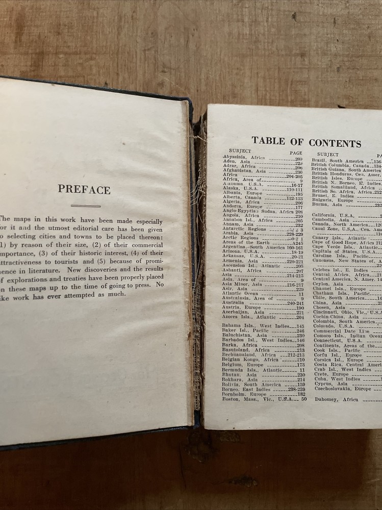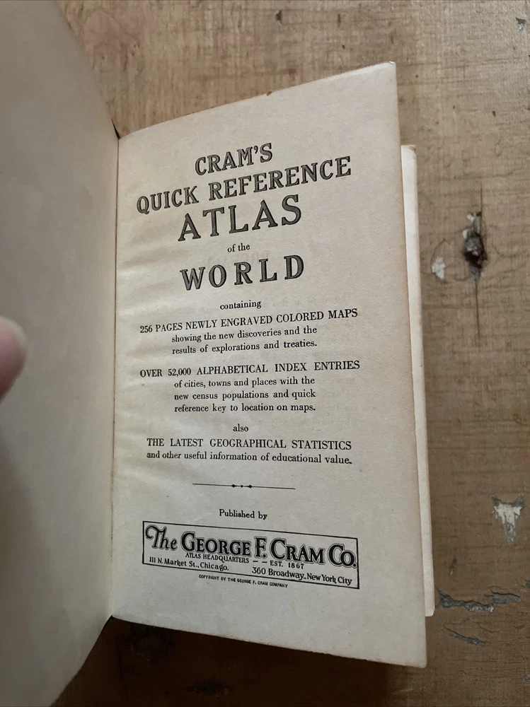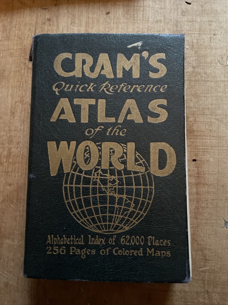 Cram's QUICK Reference Atlas of World, Color Maps. See pics for damage to binding. From my grandpa’s book collection....