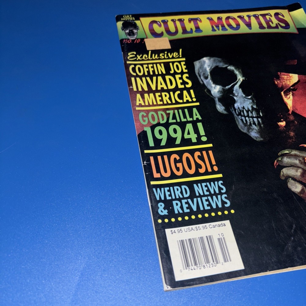 This is a rare issue of Cult Movies Magazine, featuring the legendary Godzilla, Lugosi, and Coffin Joe. The quarterly publication, issue number 10 from 1994, is a must-have for fans of cult movies, horror and monster movies, and science fiction. The magazine is richly illustrated and written by contributors like Jimmy Zero, making it a unique and valuable resource for anyone interested in the genre. The topic covered include punk, suspense, gothic, comic books, noir, television, weird, fantasy, folklore, mystery, supernatural, vampire, fiction, and occult. The magazine is published by Buddy Barnett in the United States and is perfect for those who are looking for a great read and a collector's item.