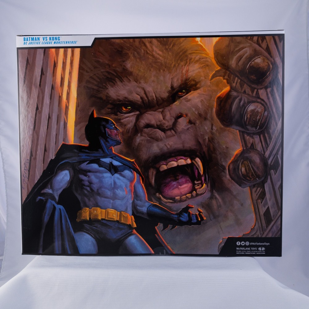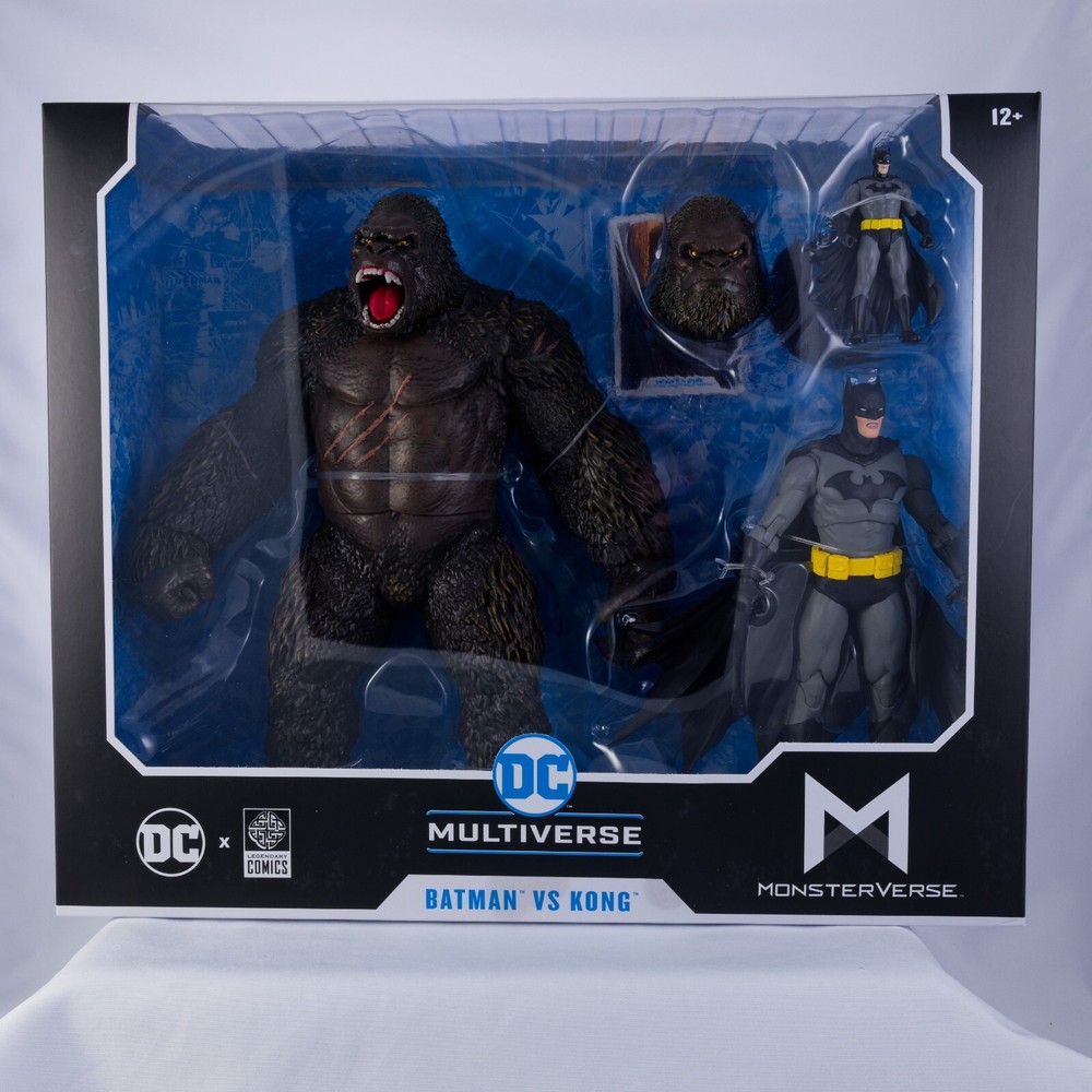 DC Multiverse Batman vs. Kong Megafig Justice League vs. Godzilla vs. Kong Action Figure 2-Pack: The Caped Crusader faces off against King Kong! This DC Justice League and MonsterVerse crossover features a 7-inch Batman figure with a 11 1/2-inch tall King Kong Megafig figure. As an added bonus, a 3-inch Batman figure is included! It also comes with an alternate Kong head, figure display base, and collectible art card with character art on the front, and character biography on the back. For ages 12 and up. The cataclysmic crossover event of the year is here as the DC Universe clashes with Legendary's Monsterverse in Justice League vs. Godzilla vs. Kong. Clark Kent is enjoying a night off with a very important dinner planned with his girlfriend, Lois Lane, when the entire city shudders under the weight of the monstrous Godzilla, who emerges from the bay! What started as a routine clash between the Justice League and the Legion of Doom takes a dangerous turn when the wall between worlds is breached...with Godzilla, Kong, and the Monsterverse emerging on DC's Earth! Packaging may have shelf wear/ small flaws. Please check all pictures for quality purposes. All Items are Packaged with Care!