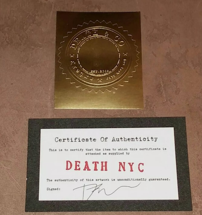 Death NYC Print is Brand New 100% Authentic Size: 45cm x 32cm (large) Edition of 100 and Artists Proofs (of which there are approx 20-30) This print is numbered #xx/100 or is an Artists Proof (AP)...see pics for details The art print is signed and dated by DEATH NYC Paper: Fine art 300 gsm paper Print is Blind Stamped and Comes With Certificate of Authenticity Card signed by DEATH NYC and a Gold Seal Sticker Combined shipping available