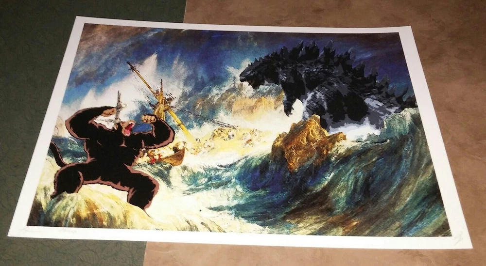 DEATH NYC ltd signed street art print 45x32cm king kong vs godzilla monster war