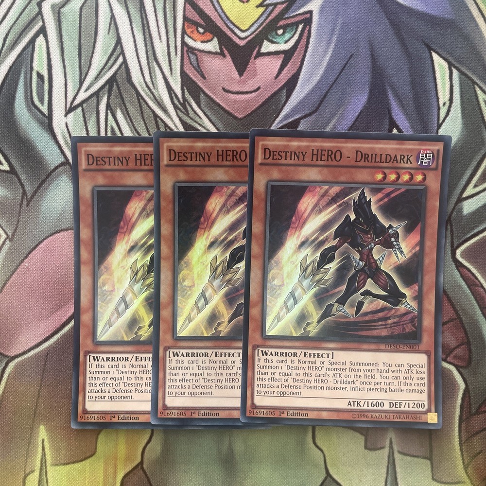 This playset is mixed edition (you will receive a mixture of unlimited and 1st edition cards) Listing Template 2018 Home About Us Shipping Returns View Feedback Contact Us DESO-EN001 x3 Destiny HERO - Drilldark Super Rare Excellent Condition Yugioh These cards are in excellent condition as per the photos. You will receive a playset of cards. (x3) Thanks for viewing! Thanks for viewing! Please check out our eBay store for more cards and don’t forget to use our promotional offers to save money on multiple items! We offer COMBINED INTERNATIONAL SHIPPING! Please contact us and ask us to combine multiple cards in your shipment to save on postage costs! International tracking is included on all orders over £40. If you require a tracking code under this amount it is an additional charge of £6.50. Please add this to your order or contact us for more information. We provide postage free in the UK! All of our single cards are sleeved, with a taped Toploader to ensure maximum protection, and the best overall condition of your cards! Combined orders may in the same sleeve, unless requested otherwise. Do you want to earn extra cash for your old cards? Clear out your binder and send us photos of what you have! We will happily send you an offer and sort out postage to make it hassle free. There's no harm in trying! Message us now! Free UK Delivery! Honest Sellers. We take care of the cards so you can worry less about the fuss and more about winning, competing and collecting. About Us We started selling collectable cards over 6 years ago after selling off our own childhood Yu-Gi-Oh collection. We then rediscovered our passion for trading card games. Ever since, my brother and I have been trying to ensure that we provide a range of cards within the fastest possible time to ensure you can build your collection as you’d like it! With over 35,000 positive feedback we strive for quality customer service, aiming to give the service that we would like to receive and stock a huge inventory of new and vintage collectable cards from popular games such as Yu-Gi-Oh and Pokemon so there’s something for everyone! Our goal is that we hope to build a collectable card community as passionate about collectable cards as we are! Contact Us The best way to get in contact is through eBay’s ‘contact seller’ button where we’ll try to get back to you as soon as possible. Feedback We always prioritise your buying experience so you can shop without worry. Contact us if there’s any part of an order you were dissatisfied with as we hope to resolve any issues as soon as possible. Buy with confidence. View Our Categories