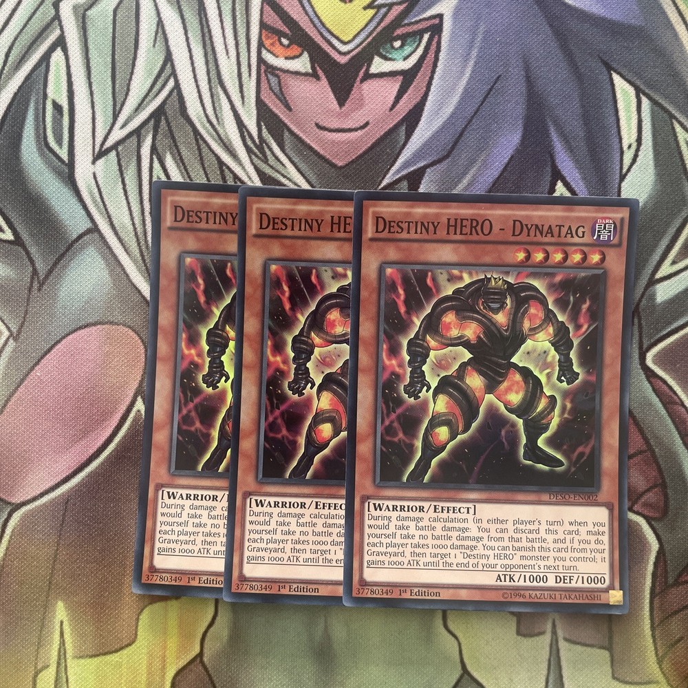 This playset is mixed edition (you will receive a mixture of unlimited and 1st edition cards) Listing Template 2018 Home About Us Shipping Returns View Feedback Contact Us DESO-EN002 x3 Destiny HERO - Dyntag Super Rare Excellent Condition Yugioh These cards are in excellent condition as per the photos. You will receive a playset of cards. (x3) Thanks for viewing! Thanks for viewing! Please check out our eBay store for more cards and don’t forget to use our promotional offers to save money on multiple items! We offer COMBINED INTERNATIONAL SHIPPING! Please contact us and ask us to combine multiple cards in your shipment to save on postage costs! International tracking is included on all orders over £40. If you require a tracking code under this amount it is an additional charge of £6.50. Please add this to your order or contact us for more information. We provide postage free in the UK! All of our single cards are sleeved, with a taped Toploader to ensure maximum protection, and the best overall condition of your cards! Combined orders may in the same sleeve, unless requested otherwise. Do you want to earn extra cash for your old cards? Clear out your binder and send us photos of what you have! We will happily send you an offer and sort out postage to make it hassle free. There's no harm in trying! Message us now! Free UK Delivery! Honest Sellers. We take care of the cards so you can worry less about the fuss and more about winning, competing and collecting. About Us We started selling collectable cards over 6 years ago after selling off our own childhood Yu-Gi-Oh collection. We then rediscovered our passion for trading card games. Ever since, my brother and I have been trying to ensure that we provide a range of cards within the fastest possible time to ensure you can build your collection as you’d like it! With over 35,000 positive feedback we strive for quality customer service, aiming to give the service that we would like to receive and stock a huge inventory of new and vintage collectable cards from popular games such as Yu-Gi-Oh and Pokemon so there’s something for everyone! Our goal is that we hope to build a collectable card community as passionate about collectable cards as we are! Contact Us The best way to get in contact is through eBay’s ‘contact seller’ button where we’ll try to get back to you as soon as possible. Feedback We always prioritise your buying experience so you can shop without worry. Contact us if there’s any part of an order you were dissatisfied with as we hope to resolve any issues as soon as possible. Buy with confidence. View Our Categories