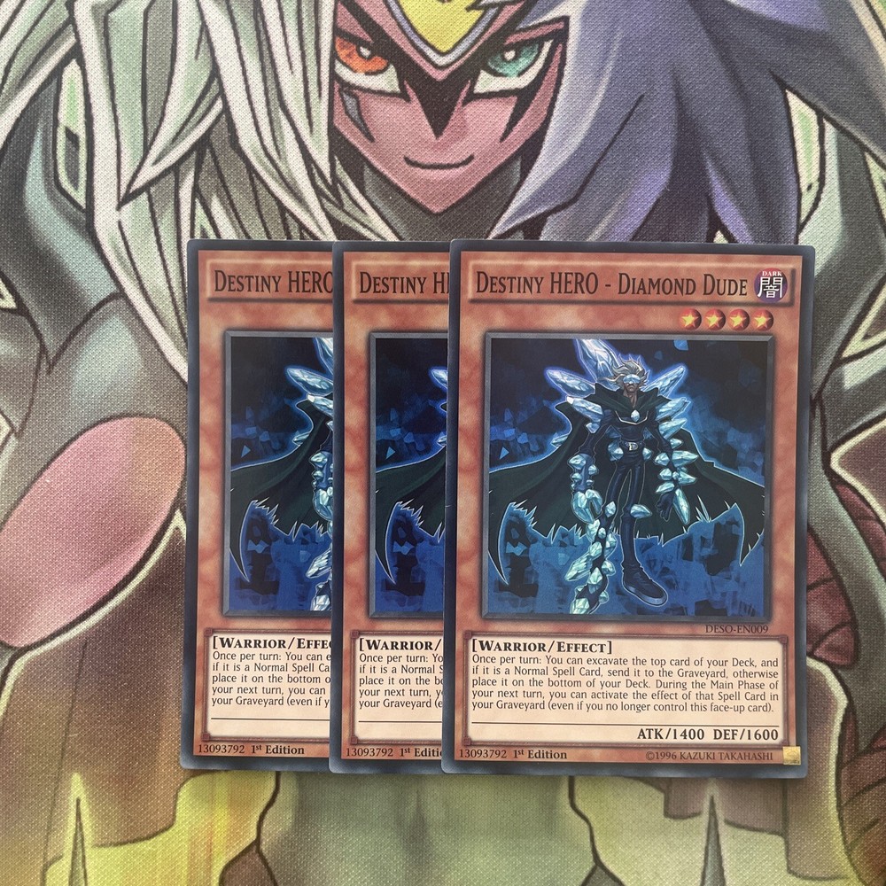 Listing Template 2018 Home About Us Shipping Returns View Feedback Contact Us DESO-EN009 x3 Destiny HERO - Diamond Dude Super Rare Excellent Condition Yugioh These cards are in excellent condition as per the photos. You will receive a playset of cards. (x3) Thanks for viewing! Thanks for viewing! Please check out our eBay store for more cards and don’t forget to use our promotional offers to save money on multiple items! We offer COMBINED INTERNATIONAL SHIPPING! Please contact us and ask us to combine multiple cards in your shipment to save on postage costs! International tracking is included on all orders over £40. If you require a tracking code under this amount it is an additional charge of £6.50. Please add this to your order or contact us for more information. We provide postage free in the UK! All of our single cards are sleeved, with a taped Toploader to ensure maximum protection, and the best overall condition of your cards! Combined orders may in the same sleeve, unless requested otherwise. Do you want to earn extra cash for your old cards? Clear out your binder and send us photos of what you have! We will happily send you an offer and sort out postage to make it hassle free. There's no harm in trying! Message us now! Free UK Delivery! Honest Sellers. We take care of the cards so you can worry less about the fuss and more about winning, competing and collecting. About Us We started selling collectable cards over 6 years ago after selling off our own childhood Yu-Gi-Oh collection. We then rediscovered our passion for trading card games. Ever since, my brother and I have been trying to ensure that we provide a range of cards within the fastest possible time to ensure you can build your collection as you’d like it! With over 35,000 positive feedback we strive for quality customer service, aiming to give the service that we would like to receive and stock a huge inventory of new and vintage collectable cards from popular games such as Yu-Gi-Oh and Pokemon so there’s something for everyone! Our goal is that we hope to build a collectable card community as passionate about collectable cards as we are! Contact Us The best way to get in contact is through eBay’s ‘contact seller’ button where we’ll try to get back to you as soon as possible. Feedback We always prioritise your buying experience so you can shop without worry. Contact us if there’s any part of an order you were dissatisfied with as we hope to resolve any issues as soon as possible. Buy with confidence. View Our Categories
