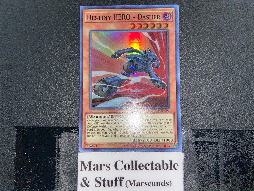 DESTINY HERO - DASHER SUPER RARE OP18-EN004 1ST EDITION NM!. All orders under $20 will ship with EBay standard envelope. All orders over $25 will include tracking. All cards are mailed with protected top loader. Cards with single pictures are Mint or Near Mint condition. Flaws will be present in pictures post. If you have any questions or concerns please message me and I will respond as soon as possible. If additional pictures are needed please contact me. Condition: Will have condition listed in the title. However, if you have question or need additional pictures please contact me. We do our best to answer all message. Return: If there’s an issue with your order please contact me first. I will do my best to correct any errors or issues. Shipping: Will typically ship the next day, unless it’s a weekend and in that case cards will be shipped on Monday.
