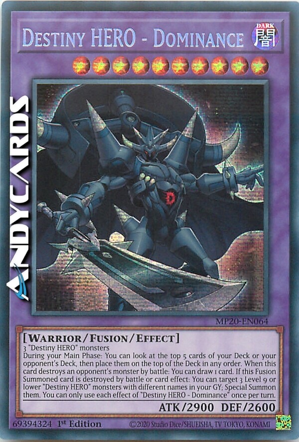 Destiny Hero Dominance Secret Prismatic MP20 EN064 1st Ed Yugioh Card