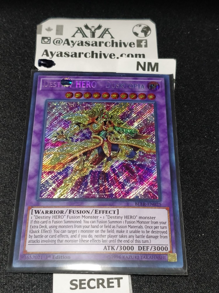 HUGE INVENTORY ON OUR WEBSITE . FOR MORE INFORMATION. Follow us for updates, notices, and special deals. To do this please click Save on our storefront. ALSO,on our Instagram page @ ayasarchive for your daily YGO Eye Candy from our collection. Feedback Feedback is Given , once Feedback is Left . ;) For flash deals, follow our store, and subscribe to our email list. New cards every week. Shipping Shipping within Canada: (3-8 business days) Shipping from Canada to the U S A : (7-15 business days) We treat our cards and shipping process with the utmost importance, every delivery is recorded in our database. Every transaction is monitored. For future reference, if any disputes were to arise, documentation will be provided. These cards are : Shipped within 1 Business day. 100% authentic, tournament legal cards! Near Mint Condition, unless specified. Shipped sleeved and in a toploader! Delivery Delays: Suggested delivery range from eBay is not always accurate. Delays can be caused by many factors which are out of our control ie: Weather, customs, government disruption, strikes ...etc We ship our cards out within 1 business day by dropping them off at the Canadian post office. Thank you for understanding. Guide Mint ( NM/M ): No apparent imperfections; possible light scratches on surface. Has crisp corners, and unblemished edges. Near Mint ( NM) MAY contain very minor imperfection, possible light scratches on surface, 1-2 light blemish on edges of card, if you need please inquire for more photos Near Mint ( NM/VLP) MAY contain some minor imperfection, possible light scratches on surface, light blemish on edges of card Light Play (LP): Light edgewear or corner wear and/or multiple small bends/creases/dents. Moderate Play (MP): Very visible condition issues visible at a casual glance; border wear, corner wear, scratching or scuffing, creases or whitening, minor dirt buildup, water damage, etc. Heavy Play ( HP ): Major/multiple bends, creases, and/or dents throughout card, heavy border wear, tearing. Damaged (DMG) : The card is damaged, please refer to the picture in the listing for the location of the damage. (Even when sleeved, These cards cannot be used in official tournaments .) CANT FIND WHAT YOU'RE LOOKING FOR? Our website has a large selection, included many unlisted cards. If you want it, we may have it. Private message us or DM us on instagram. Much love for choosing AYATCG. Be sure to check out our store for more CARDS & SLEEVES, CLICK HERE