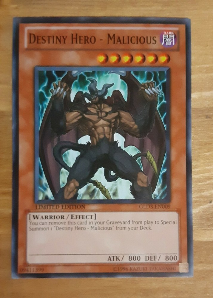 DESTINY HERO - MALICIOUS - Common - GLD3-EN009 - Limited - NM - Yu-Gi-Oh. Condition is nearmint this card is not in perfect condition feel free to ask more pictures to be sure on what you are bidding....