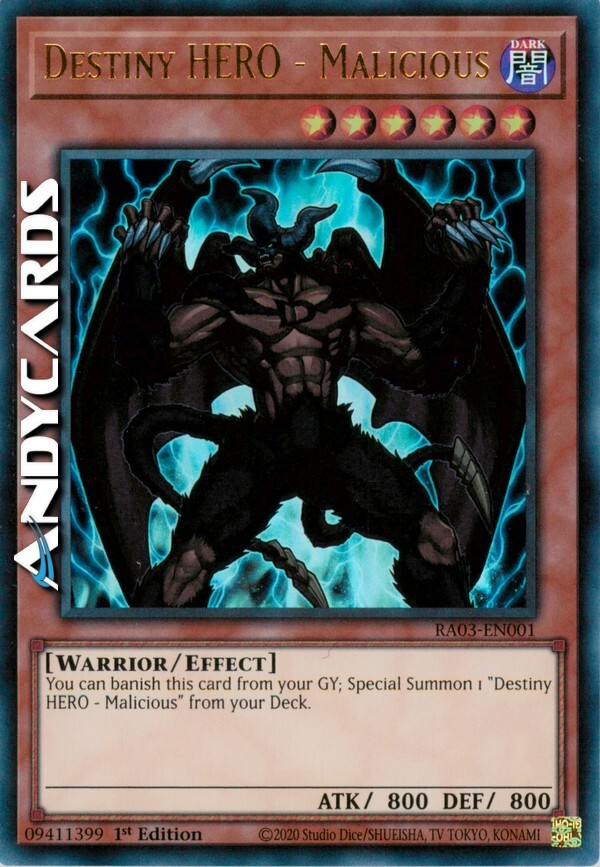 DESTINY HERO MALICIOUS Ultra Rare 1st Edition RA03 EN001 Yugioh Card