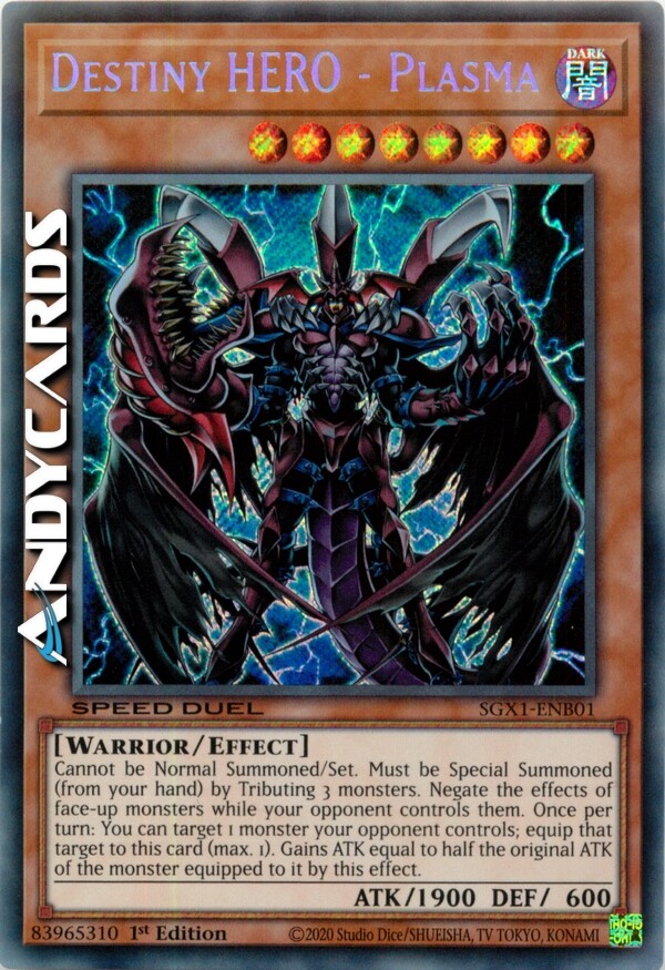 Speed Duel Destiny Hero Plasma Secret Rare SGX1 ENB01 1st Edition