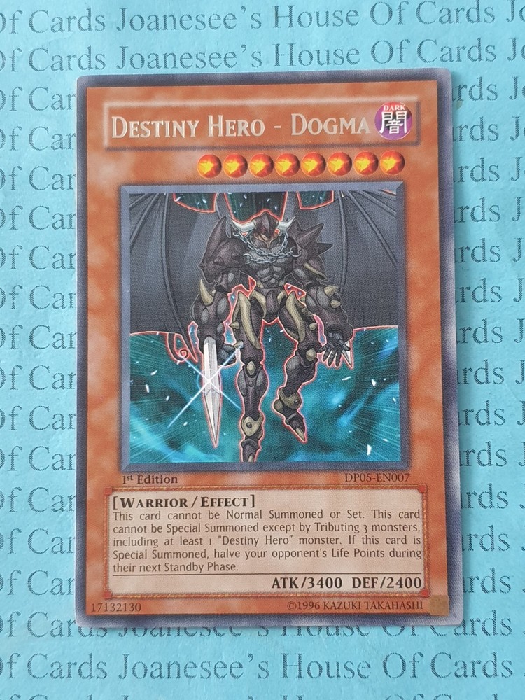 This is the Common Dark Warrior Destiny HERO - Dogma DP05-EN007 1st Edition English Mint/NMint Condition Totally Original Konami (or your money back!) I will deliver in safe packaging to keep it in perfect condition. Ideal for players and collectors alike. Check out my other items! I will combine postage costs for multiple purchases. Sign up for my email newsletters by adding my eBay Shop to your favourites