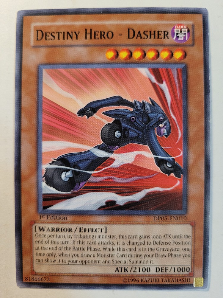 DP05-EN010 Destiny HERO - Dasher Common 1st Ed Yugioh LP Check my store for other books, figures, toys, cards, video games, movies, collectibles, art and gaming supplies! Authenticity guaranteed! Will ship fast and free guaranteed! ---------------------------------------------------------------------------------------------------------------------------------------------------------- PLEASE READ the following ebay and store policies if you are interested in a purchase. Purchasing a product means you agree to all terms and conditions. - When purchasing from multiple different listings, please combine them into one transaction. Instead of clicking "buy it now", click "add to cart", then do this for all items you are interested in from the store, then checkout. This saves on transaction fees and is greatly appreciated. It also lowers chances of any errors or shipping delays occurring. - If you have any issues with an order please MESSAGE THE ACCOUNT BEFORE leaving negative feedback OR opening an ebay claim/request. We strive for excellent customer service and will do everything possible to make your transaction fair and pleasant. If a claim is opened, or negative feedback is given, before any attempt to communicate you will be added to a block/black list, and the claim has a significantly higher chance of being denied. - Topsalez will only ever leave customers positive feedback! ---------------------------------------------------------------------------------------------------------------------------------------------------------- Please allow 24-48 business hours to respond to communications, Shipments should be sent within 2 business days. Sometimes Longer. - WE WILL ONLY SHIP TO ADDRESS ON FILE. UPDATE YOUR ADDRESS BEFORE PURCHASE. WE ARE NOT RESPONSIBLE FOR WRONG ADDRESS SHIPMENTS. - Note that some shipments will be made without tracking to save on postage. These will be low value, light-weight, and small or flat items. - We are open to offers for purchases of HIGH VOLUME or HIGH DOLLAR listings. If you're interested in purchasing a very large quantity we will happily offer VERY LARGE DISCOUNTS! Please message the account anytime for details! ---------------------------------------------------------------------------------------------------------------------------------------------------------- - ALL PRODUCTS SOLD ARE CONSIDERED SOLD AS IS. Please read the rules for returns/refunds below. To prevent fraud we have strict return policies. - PLEASE NOTE WE ARE NOT RESPONSIBLE IF PRODUCT DOESN'T WORK. WE TEST ALL PRODUCTS BEFORE SALE. If products are not tested, they will explicitly state so in the title and/or description. ---------------------------------------------------------------------------------------------------------------------------------------------------------- Will NOT refund for: - Non receipt of item if shipping shows as delivered. TopSalez and Ebay are not responsible for a lack of security of the mailbox or recipient's address. Please check your local postal carrier for missing items before communicating something is wrong. - If customer disagrees with condition upon receipt. Everyone's ideas of conditions vary from person to person. Please see pictures or message the account before purchasing. - If customer changes their mind after purchase and the item already has a tracking number. - If item was accidentally purchased or fraudulently purchased and the item already has a tracking number. ---------------------------------------------------------------------------------------------------------------------------------------------------------- HOWEVER, we will refund ANY purchase IN FULL, no questions asked, if customer agrees to pay for return shipping, original shipping, and a small restocking fee. (Restock fee only applies for fees, supplies, or damage) Please see rules for returns below. ---------------------------------------------------------------------------------------------------------------------------------------------------------- Will ONLY refund for: - Customer changes their mind, or item was fraudulently or accidentally purchased, and the item has not been shipped and no tracking # was created. We ship fast so please request cancellation immediately. Due to USPS not refunding for purchases, if label is already printed, product will still be shipped and refund denied. - Non receipt of item and tracking shows as still in progress or non-delivered. If you open a claim before the 15 business day waiting period your REFUND WILL BE DENIED. (Insurance demands to wait for at least 15 business days before filing a claim, please allow this time to pass so a claim and a refund can be made simultaneously.) - Item arrived damaged. All shipped items are insured. Please have pictures of the postal package and the item purchased for insurance verification. ---------------------------------------------------------------------------------------------------------------------------------------------------------- Returns need to be: - Exact item as what was sent originally (We record and check serial numbers, photos, and receipts to prevent fraud) - In the exact same condition sent originally (Send back in same way as was sent to you or better. If item was damaged by customer or shipping company refund may be denied) - Including everything that was sent originally (accessories, cords, cases, paper inserts, etc) - We reserve the right to deny a refund for any reason. So please read and follow all the rules.
