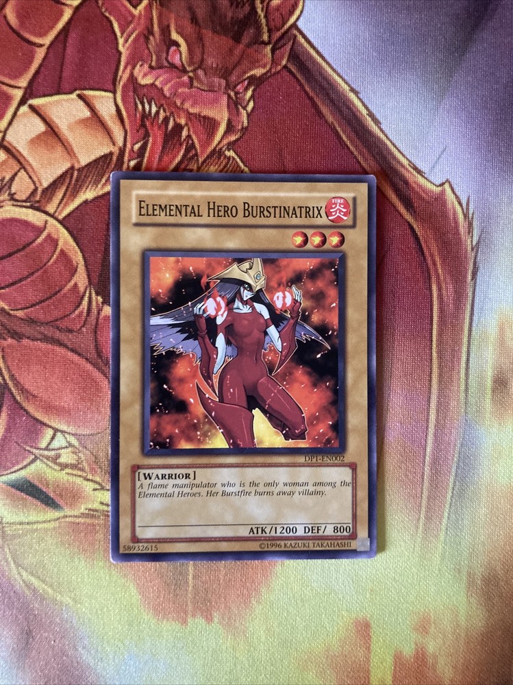 Listing Template 2018 Home About Us Shipping Returns View Feedback Contact Us DP1-EN002 YUGIOH Elemental Hero Burstinatrix Yugioh Card This card is in near mint condition. Please check the photos for more questions on condition or please just ask! Thanks for viewing! Please check out my eBay store for more cards and to use our promotional offers! We offer COMBINED INTERNATIONAL SHIPPING! Please contact us and ask us to combine your shipment! We provide UK free postage! All of our cards are sleeved, with a taped Toploader to ensure maximum protection, and the best overall condition of your cards! Do you want to earn extra cash for your old cards? Clear out your binder and send us photos of what you have! We will happily send you an offer and sort out postage to make it hassle free. There's no harm in trying! Message us now! You will receive these cards in very good condition as shown! Thanks for looking! Free delivery. Honest Sellers. We care about your cards and your satisfaction. About Us Based in United Kingdom, twintraders has been an eBay member since 02 Mar, 2006 Contact Us The best way to contact us is through the eBay messaging system. You can send us a message by using the "Questions and answers" section towards the bottom of the page. Feedback We will always help you to have a 100% positive happy buying experience. Contact us if you are unhappy about any aspect of your purchase from us. We only want five star feedback from you so buy with confidence. View Our Categories Check out our discounts/deals for better value!