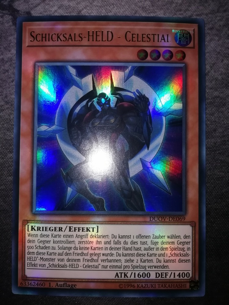 DUOV-DE069 Schicksals-HELD - Celestial 1. Aufl Destiny Hero NM Ultra Rare Ger. Versand erfolgt knicksicher