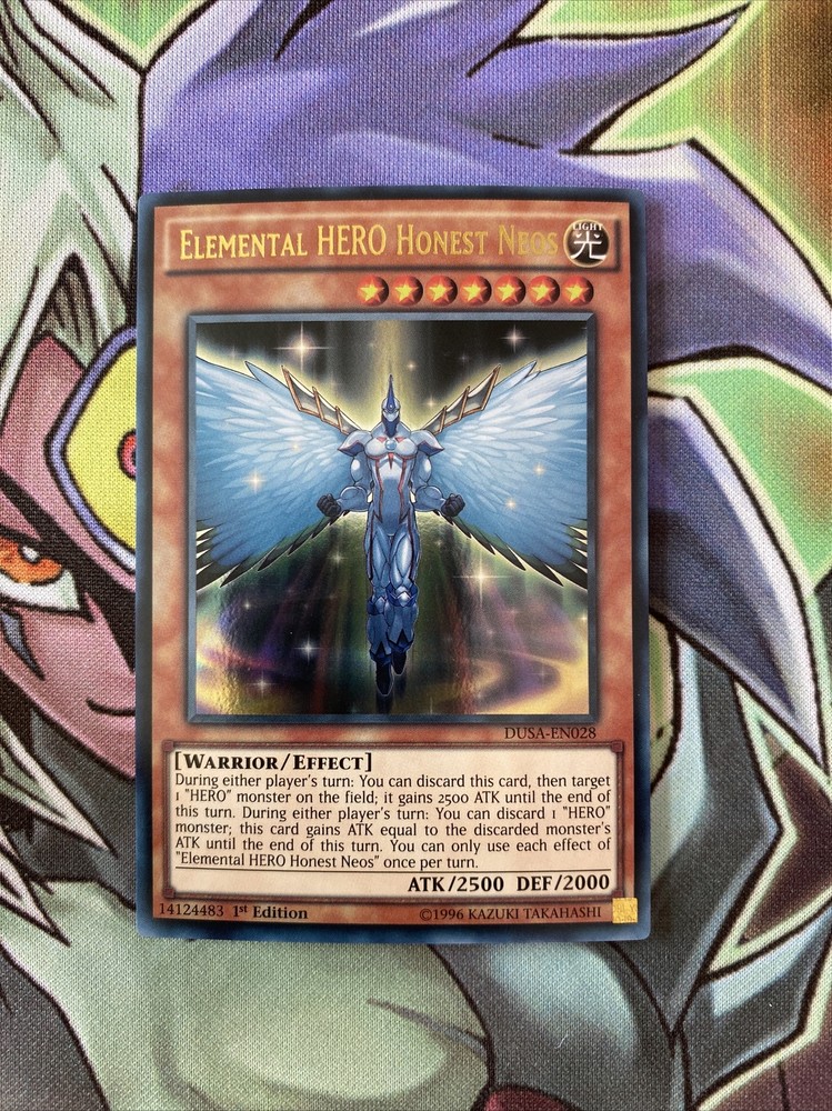 Listing Template 2018 Home About Us Shipping Returns View Feedback Contact Us DUSA-EN028 Elemental Hero Honest Neos Ultra Rare 1st Edition NM Yugioh Card This card is in near mint condition. Please check the photos for more questions on condition or please just ask! Thanks for viewing! Please check out my eBay store for more cards and to use our promotional offers! We offer COMBINED INTERNATIONAL SHIPPING! Please contact us and ask us to combine your shipment! We provide UK free postage! All of our cards are sleeved, with a taped Toploader to ensure maximum protection, and the best overall condition of your cards! Do you want to earn extra cash for your old cards? Clear out your binder and send us photos of what you have! We will happily send you an offer and sort out postage to make it hassle free. There's no harm in trying! Message us now! You will receive these cards in very good condition as shown! Thanks for looking! Free delivery. Honest Sellers. We care about your cards and your satisfaction. About Us Based in United Kingdom, twintraders has been an eBay member since 02 Mar, 2006 Contact Us The best way to contact us is through the eBay messaging system. You can send us a message by using the "Questions and answers" section towards the bottom of the page. Feedback We will always help you to have a 100% positive happy buying experience. Contact us if you are unhappy about any aspect of your purchase from us. We only want five star feedback from you so buy with confidence. View Our Categories