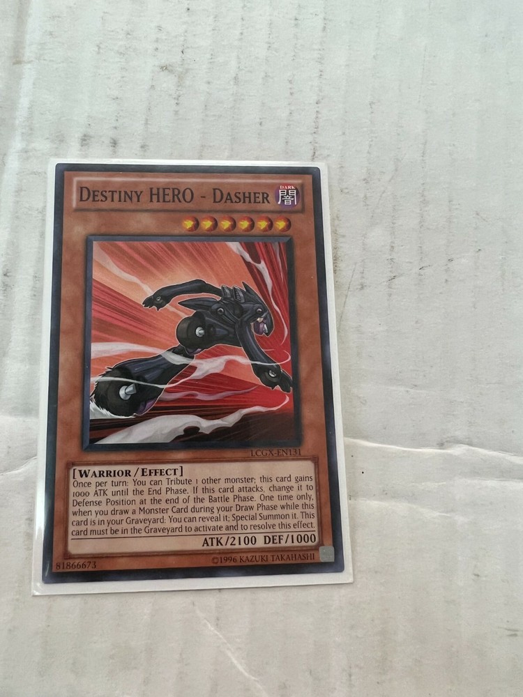 This Destiny HERO - Dasher card is out of YuGiOh Set Legendary Collection 2. This card is in Near Mint condition. Set Number #LCGX-EN131, Common and Unlimited. Tracking if over twelve dollars. Payment within six days of order.