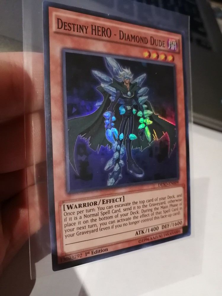 Destiny HERO - Diamond Dude - DESO-EN009 - Super Rare - 1st Edition NM. Condition is Used. Shipped with Canada Post Lettermail.