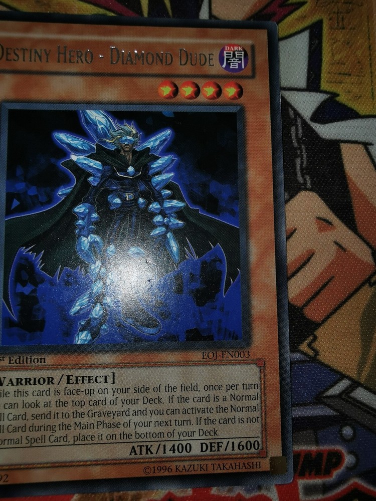 Home New Arrivals Feedback Contact Destiny HERO - Diamond Dude eoj-en003 Item Description Good day Sir/Madam! The card(s) you are viewing now will be in LP/MP condition Message me on Instagram (@TheCollector1462) for better deals on all cards/slabs ^^ CHECK OUT MY GRADING SYSTEM BELOW ^_^ All conditions stated in my listings are my opinion of the card, which may differ from somebody else. When I say 'Mint condition', I believe it is grade worthy, please message me first if that is what you are after and I will double check any card for you so nobody is disappointed :) MINT (M) = No damages....MINTY FRESH! (BUT MESSAGE ME if you need me to check if it is grade worthy) NEAR MINT (NM) = Close to mint with only very slight wear/imperfection(s) VERY LIGHT PLAY (VLP) = Very slight wear but not quite NM. LIGHT PLAY (LP) = Visible wear on the card but nothing major. MODERATE PLAY (MP) = Obvious wear like notable edge/corner silvering/whitening, maybe the odd light indentation. HEAVILY PLAYED (HP) = Still playable but in pretty bad shape overall & likely to have creases/notable indentations. + = Higher end of that condition grade e.g. 'NM+' is almost Mint. Always message me if unsure of condition :P The first picture (of both front and back) will be the card(s) you will receive!!! Any extra pictures are to show you the other cards for sale (in order). Please have a look at my other swag as upload old and new cards most days! :) Message me if i can help with anything at all! ***I WILL BUY YOUR YU-GI-OH CARDS !!!*** See Other Items Shipping Always very well packaged!! I post same day if ordered by 3pm or next working day if after 3pm :) Message me if you have any specific requirements for postage as I can always work something out for you! Payment I accept many methods of payment including PayPal, Bank Transfer etc... :) Thank you!! Returns I accept returns for items not as described (any error on my part). I will also accept returns on items where you have simply changed your mind....however I do request that you pay the postage back to me. Thanks for looking Thank You for your purchase Copyright All Rights Reserved - Template Created by ZTproject