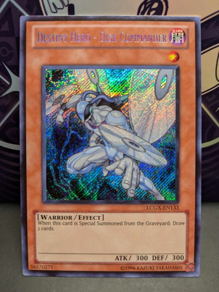 ======== YuGiOh ======== Destiny Hero - Disk Commander Secret Rare - Legendary Collection GX Shipped in a Sleeve + a Toploader Ships next day after purchase Near Mint Condition Please see photos for more Clarity Send me an offer and I will try to Accept it Thx for Reading // You are a MVP