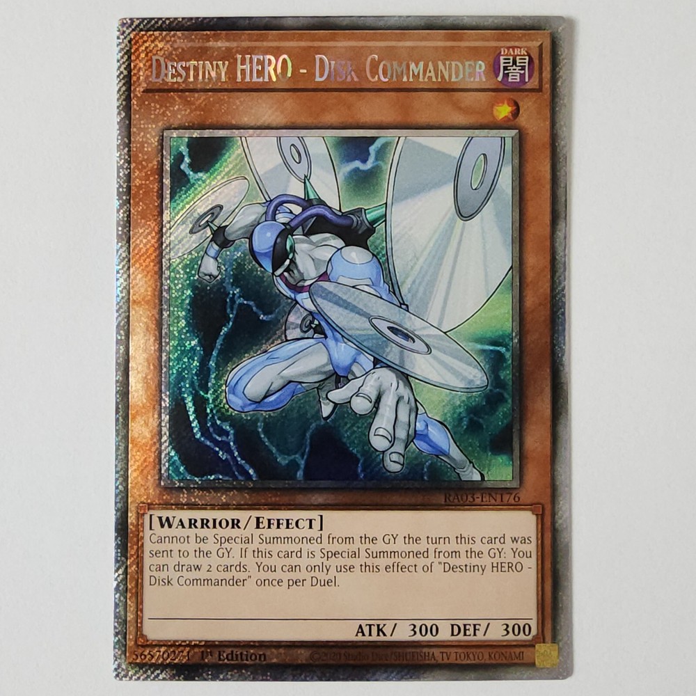 Destiny HERO - Disk Commander - RA03-EN176 - NM - Platinum Secret Rare - 1st ed- Yugioh Quarter Century Bonanza Don't forget to click on the store icon for more great deals on singles, playsets, and sealed products.