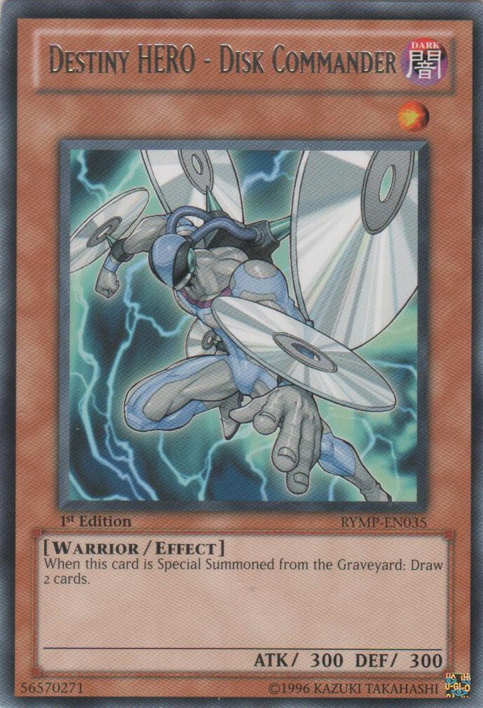Please, carefully read the following: Image shown is a stock photo and does not reflect the actual card you will be receiving. Please refer to the condition guide below, the title and item description for what you will be receiving. Please also be aware that due to plastic shortages, orders may not always come in a plastic toploader but will always be protected as much as possible to prevent damage. You will receive 1x Destiny HERO - Disk Commander - RYMP-EN035 - Rare - 1st Edition - Condition: Lightly Played Please refer to the Title and Item Description above for the item being purchased. Delivery delays: Deliveries may not always fall within the estimated delivery dates when shipping outside of Canada and USA. Many factors may contribute to delays in delivering the package such as weather and customs. Please note that delivery to international locations may take up to 8 weeks to arrive . We always ship out orders within 1 business day and after dropping off with the post office, delivery times are out of our control. Feedback: We will always leave positive feedback for you and we ask if you can do the same for us. If there is any reason why the transaction was not up to your expectations, please message us before leaving feedback so we can address the issue. Combined shipping: To receive a combined shipping quote, please make sure that you commit to purchasing on ebay.ca . This allows us to send you a combined shipping invoice before payment. Shipping within the USA (6-10 Business days): FREE! Shipping within Canada (3-8 Business days): FREE! Shipping and handling delay: We aim to ship all orders within 1 business day. We do not ship on weekends and holidays. Condition Guide: We do not sell any cards that are in MINT condition, the best condition that we offer is near mint. Near Mint (NM) - Cards in Near Mint condition show minimal to no wear from shuffling, play or handling and can have a nearly unmarked surface, crisp corners and unblemished edges outside of a few minimal flaws. A Near Mint card may have a tiny edge nick or a tiny scratch or two, but overall look nearly unplayed with no major defects or flaws. Lightly Played (LP) - Cards in Lightly Played condition may have minor border or corner wear or even just slight scuffs or scratches. There are no major defects such as water damage, bends or issues with the structural integrity of the card. Noticeable imperfections are okay, but none should be too severe or at too high a volume. Moderately Played (MP) - Cards in Moderately Played condition exhibit condition issues visible at a casual glance. Cards in Moderately Played condition can have border wear, corner wear, scratching or scuffing, creases or whitening, minor dirt buildup or any combination of mild examples of these marks. A Moderately Played card may have some form of a more major marking, such as spot water damage or creasing that doesnʼt affect card integrity, but not in combination with other issues such as scratches, scuffs or border/edge wear and not impacting a large area of the card. Heavily Played (HP) - Cards in Heavily Played condition show a severe amount of wear. Heavily Played condition can include cards that have major creasing, major whitening, major border wear or any combination of those flaws. (These flaws cannot prevent the card from being tournament playable when sleeved.) Damaged - Cards in Damaged condition can exhibit a tear, bend or crease that may make the card illegal for tournament play, even in a sleeve. Cards in Damaged condition may have extreme border wear, extreme corner wear, heavy scratching or scuffing, folds, creases or tears or other damages that impacts the structural integrity of the card.