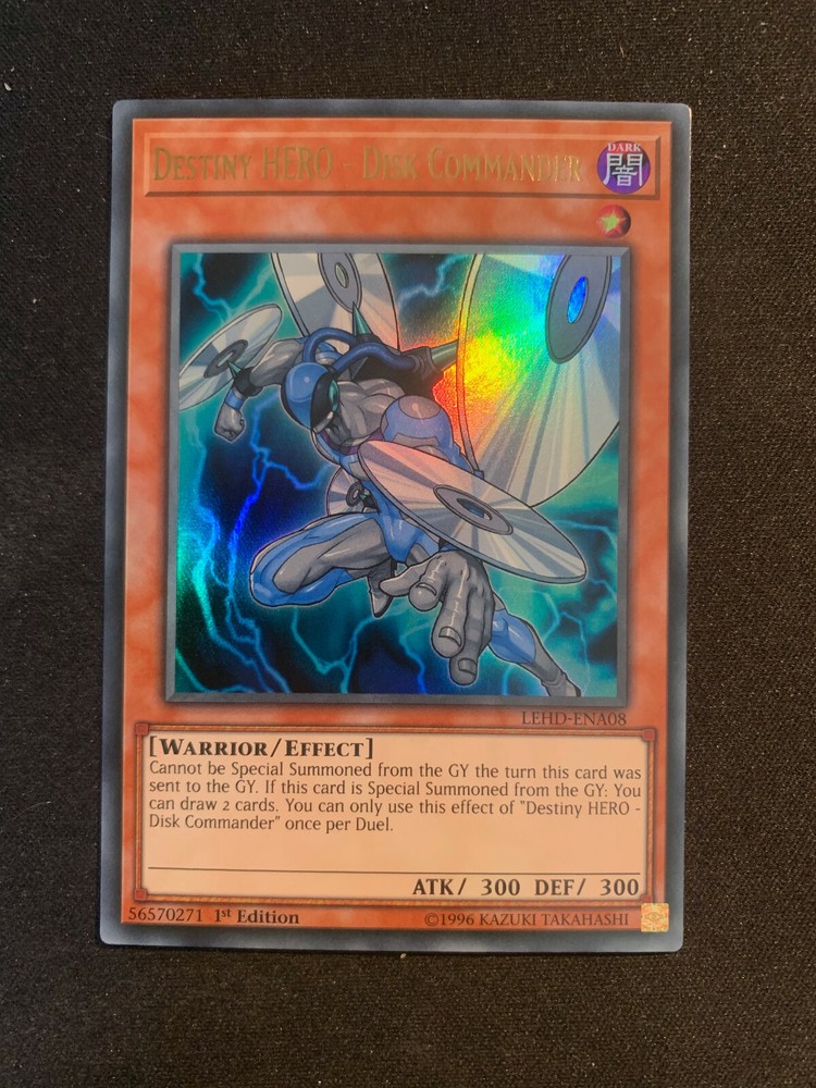 Destiny HERO - Disk Commander - Ultra Rare - LEHD-ENA08 - Yu-Gi-Oh Card N/M Card is 1st Edition Each Card is in Near Mint Condition From a Recently Opened Legendary Hero Decks Combined Shipping is offered on all of my TCG Listings. When Checking out with multiple cards in your cart, click ‘Request total from seller’. This will allow me to combine the shipping for multiple cards if purchased together. If this does not show up for you, then please message me and I’ll create a listing for your order. Any Further Questions Please Message Me Thanks