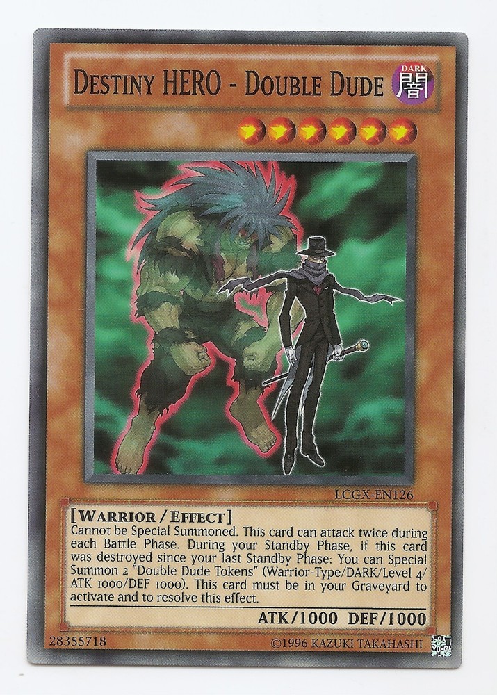 This is the Common Dark Warrior Destiny HERO - Double Dude LCGX-EN126 Unlimited Edition English Mint/NMint Condition Totally Original Konami (or your money back!) I will deliver in safe packaging to keep it in perfect condition. Ideal for players and collectors alike. Check out my other items! I will combine postage costs for multiple purchases. Sign up for my email newsletters by adding my eBay Shop to your favourites