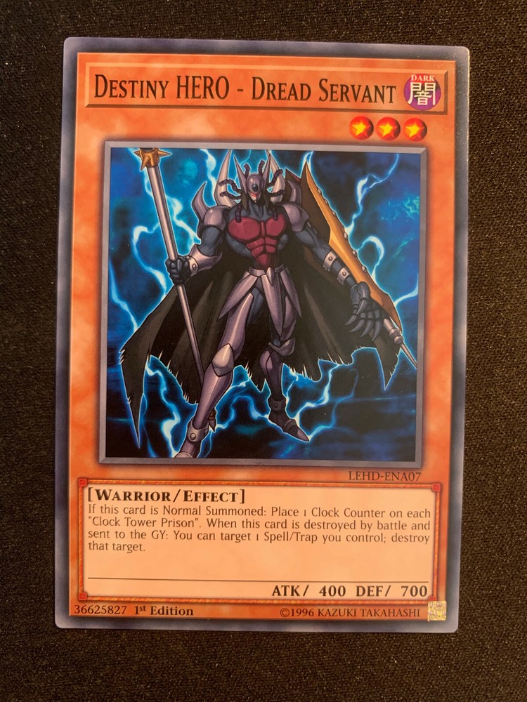 Destiny HERO - Dread Servant - LEHD-ENA07 - Yu-Gi-Oh Card N/M Card is 1st Edition Each Card is in Near Mint Condition From a Recently Opened Legendary Hero Decks Combined Shipping is offered on all of my TCG Listings. When Checking out with multiple cards in your cart, click ‘Request total from seller’. This will allow me to combine the shipping for multiple cards if purchased together. If this does not show up for you, then please message me and I’ll create a listing for your order. Any Further Questions Please Message Me Thanks