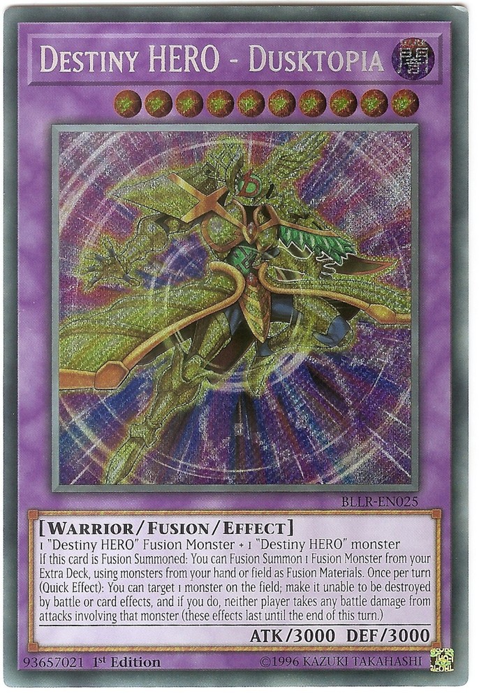 This is the Secret Rare Foil Dark Warrior Fusion Destiny HERO - Dusktopia BLLR-EN025 1st Edition English Mint/NMint Condition Totally Original Konami (or your money back!) I will deliver in safe packaging to keep it in perfect condition. Ideal for players and collectors alike. Check out my other items! I will combine postage costs for multiple purchases. Sign up for my email newsletters by adding my eBay Shop to your favourites