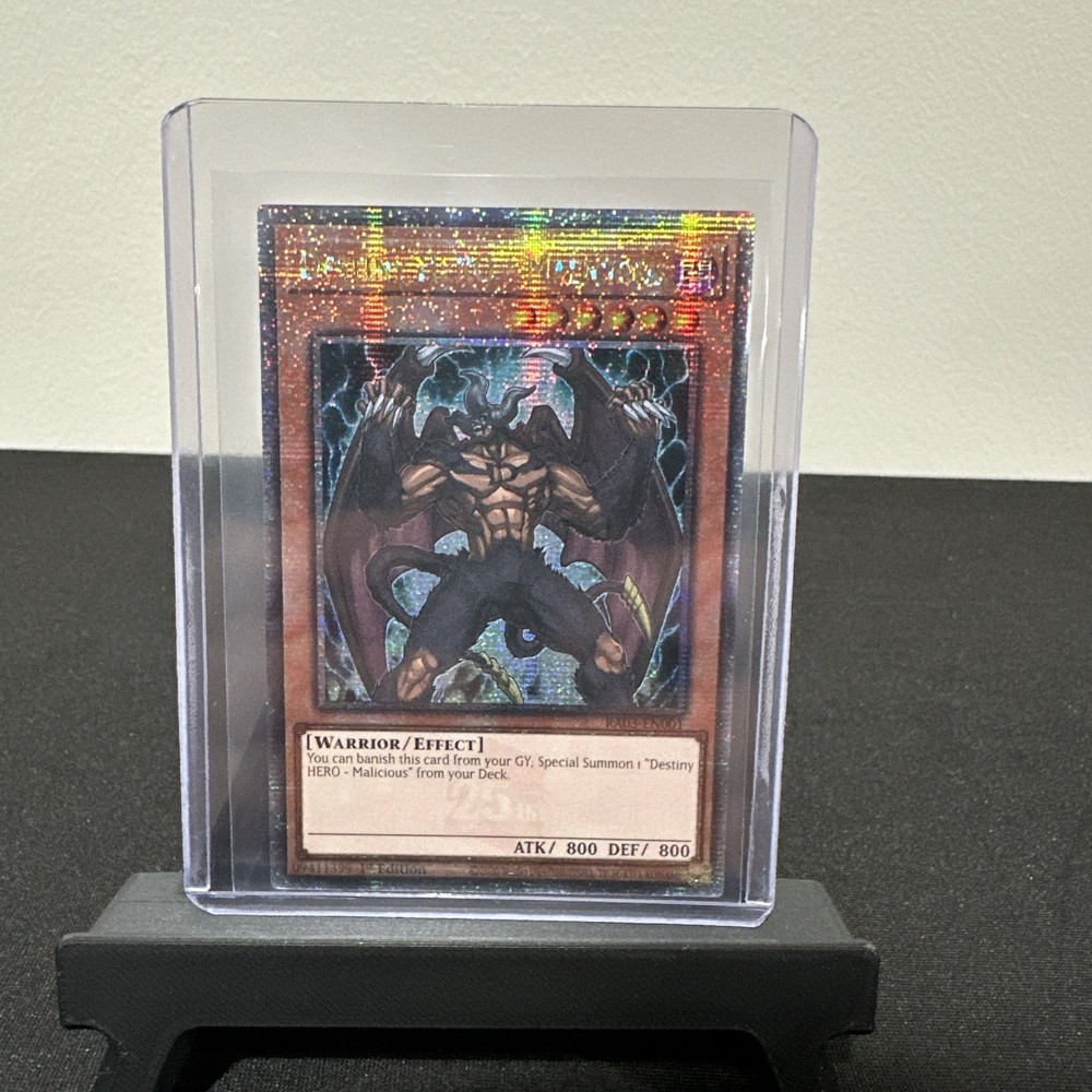 This Destiny HERO - Malicious is a stunning addition to any Yu-Gi-Oh! collection! The Quarter Century Secret Rare finish makes it pop, and as a 1st Edition, it’s a true collector’s piece. The artwork is crisp, and the card feels premium—perfect for both dueling and display. Konami nailed the quality, and the ungraded condition means it’s ready for play or grading. A must-have for HERO fans and competitive players alike!