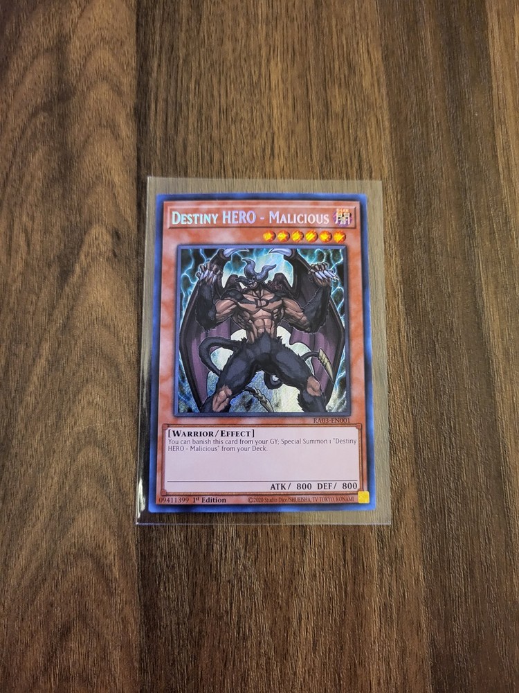 Destiny HERO - Malicious 1st Edition Secret Rare RA03-EN001 NM. Condition is Ungraded. Shipped with eBay Standard Envelope for Eligible Items up to $20....