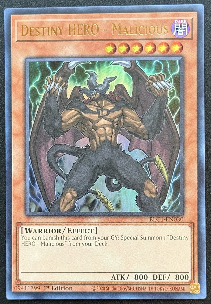 Destiny HERO - Malicious BLC1-EN030 (Gold) Ultra Rare 1st Edition Yu-Gi-Oh! Mint/Near Mint...