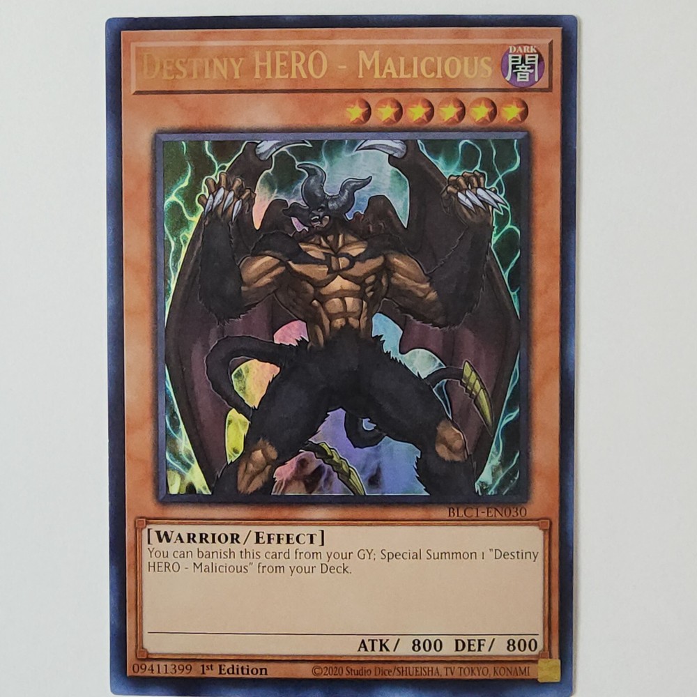 Destiny HERO - Malicious - BLC1-EN030 - NM/VLP - Ultra Rare - 1st ed - Yugioh Battles of Legend: Chapter 1 Don't forget to click on the store icon for more great deals on singles, playsets, and s ealed products.