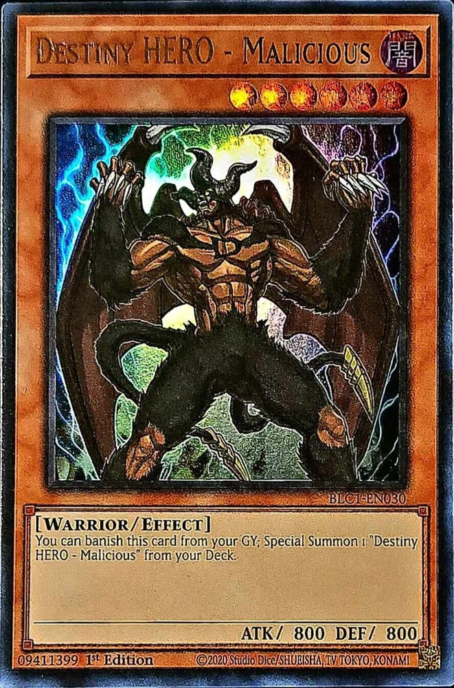 Bluefires Stuff daniel8769-2008 has 99.1% Positive Feedback Welcome! At my store, you will find collectibles and refurbished tech. From recycled memory chips and processors to a variety of storage drives and rebuilt desktops and laptops. I try to keep a variety of products available for everyone. From a single Yu-Gi-Oh! card to a full themed structure Destiny HERO - Malicious BLC1-EN030 . Condition is "New". Shipped with USPS First Class. Item Description Buyers Note: Near Mint ! A great card for any collector or player. This card is in Near Mint or better. Card Name: Destiny HERO - Malicious BLC1-EN030 - 1st Edition Set: BLC1 - Battles of Legend: Chapter 1 Quantity: 1 Edition: 1st Rarity: Ultra Rare Condition: NM Payment Information & Terms of Sale Credit Cards: We accept Visa, MasterCard, American Express, and Discover Card through PayPal. Payments are due within 3 days of purchase date! Sorry, no exceptions! Orders are shipped within 24 hours of payment. Orders placed & paid after 12noon PST on Fridays, weekends (Saturdays & Sundays), and Holidays are shipped the following business day. Cards shipped First Class Mail are in a hard plastic top loader with a Waterproof/Tear resistant Bubble Envelope w/Delivery Confirmation, NO INSURANCE! I RECOMEND THIS FOR DELIVERIES OUTSIDE THE CONTENINTAL USA. Continental USA & select countries (Canada, Europe, Australia) Residents of Puerto Rico can only use this service. Cards shipped eBay Standard Envelope for Trading Cards up to $20 are mailed in a standard letter envelope with a hard plastic top loader w/Delivery Confirmation. Delivery can take up to 3 to 5 business days . Continental USA & select countries (Canada, Europe, Australia) THIS SERVICE IS NOT AVAILABLE TO ADDRESSES TO PUERTO RICO. Cards shipped with free shipping are mailed in a standard letter envelope with a hard plastic top loader w/Delivery Confirmation. Delivery can take up to 3 to 5 business days . Continental USA & select countries (Canada, Europe, Australia) This service is excluded for Puerto Rico . I ship Worldwide! I am not responsible for any International customs, taxes, fees, etc. It’s the buyer’s full responsibility. Give up to 30 days time for deliveries outside the Continental U.S. I have no control over administration issues of services provided by other countries and their governments. Once product leaves the U.S please be patient if delivery is delayed. Condition Guide: I do not sell any cards that are in MINT condition, the best condition that we offer is near mint. Near Mint (NM) - Cards in Near Mint condition show minimal to no wear from shuffling, play or handling and can have a nearly unmarked surface, crisp corners and unblemished edges outside of a few minimal flaws. A Near Mint card may have a tiny edge nick or a tiny scratch or two, but overall look nearly un-played with no major defects or flaws. Lightly Played (LP) - Cards in Lightly Played condition may have minor border or corner wear or even just slight scuffs or scratches. There are no major defects such as water damage, bends or issues with the structural integrity of the card. Noticeable imperfections are okay, but none should be too severe or at too high a volume. Moderately Played (MP) - Cards in Moderately Played condition exhibit condition issues visible at a casual glance. Cards in Moderately Played condition can have border wear, corner wear, scratching or scuffing, creases or whitening, minor dirt buildup or any combination of mild examples of these marks. A Moderately Played card may have some form of a more major marking, such as spot water damage or creasing that doesnʼt affect card integrity, but not in combination with other issues such as scratches, scuffs or border/edge wear and not impacting a large area of the card. Heavily Played (HP) - Cards in Heavily Played condition show a severe amount of wear. Heavily Played condition can include cards that have major creasing, major whitening, major border wear or any combination of those flaws. (These flaws cannot prevent the card from being tournament playable when sleeved.) Damaged - Cards in Damaged condition can exhibit a tear, bend or crease that may make the card illegal for tournament play, even in a sleeve. Cards in Damaged condition may have extreme border wear, extreme corner wear, heavy scratching or scuffing, folds, creases or tears or other damages that impacts the structural integrity of the card