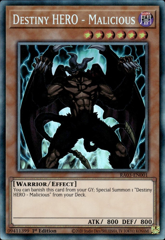 Destiny HERO Malicious Collector's Rare 1st Edition RA03-EN001 NM Yugioh Card