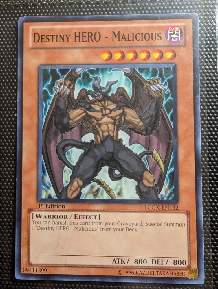 This Destiny HERO - Malicious card is in great LP condition with clean edges and no major flaws. The 1st edition common rarity from LCGX makes it a solid pick for collectors or duelists. Seller provides clear photos, ships securely in a sleeve and toploader, and offers good communication. Happy with this purchase!