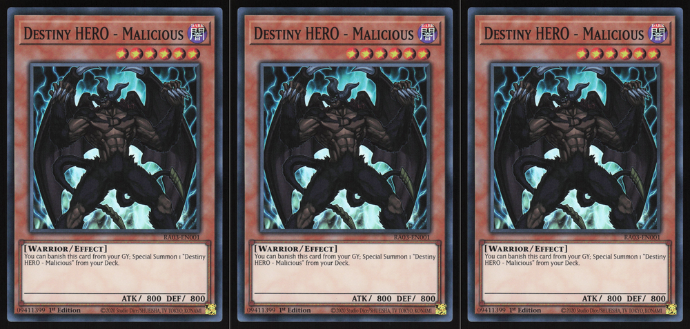 Destiny HERO Malicious Playset 3 Super Rare Yugioh RA03-EN001 Cards
