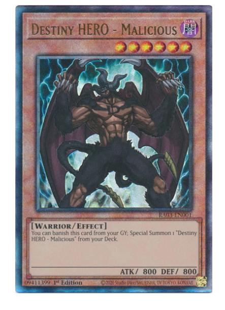 Destiny HERO Malicious RA03-EN001 Prismatic Ultimate Rare Yugioh Card