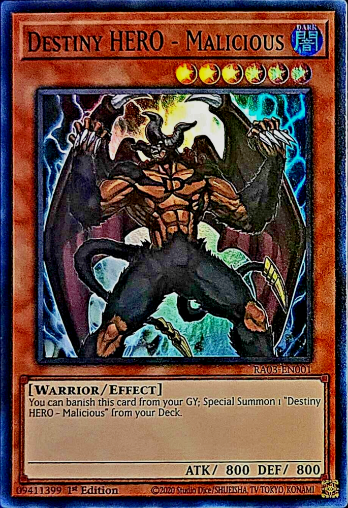 Bluefires Stuff daniel8769-2008 has 99.1% Positive Feedback Welcome! At my store, you will find collectibles and refurbished tech. From recycled memory chips and processors to a variety of storage drives and rebuilt desktops and laptops. I try to keep a variety of products available for everyone. From a single Yu-Gi-Oh! card to a full themed structure Destiny HERO - Malicious RA03-EN001. C ondition is "New". Shipped with USPS. Item Description Buyers Note: Near Mint for any collector or player. This card is in Near Mint or better. Card Name: Destiny HERO - Malicious RA03-EN001 - 1st Edition Set: RA03 - Quarter Century Bonanza Quantity: 1 Edition: 1st Rarity: Super Rare Condition: NM Payment Information & Terms of Sale Credit Cards: We accept Visa, MasterCard, American Express, and Discover Card through PayPal. Payments are due within 3 days of purchase date! Sorry, no exceptions! Orders are shipped within 24 hours of payment. Orders placed & paid after 12noon PST on Fridays, weekends (Saturdays & Sundays), and Holidays are shipped the following business day. Cards shipped First Class Mail are in a hard plastic top loader with a Waterproof/Tear resistant Bubble Envelope w/Delivery Confirmation, NO INSURANCE! I RECOMEND THIS FOR DELIVERIES OUTSIDE THE CONTENINTAL USA. Continental USA & select countries (Canada, Europe, Australia) Residents of Puerto Rico can only use this service. Cards shipped eBay Standard Envelope for Trading Cards up to $20 are mailed in a standard letter envelope with a hard plastic top loader w/Delivery Confirmation. Delivery can take up to 3 to 5 business days . Continental USA & select countries (Canada, Europe, Australia) THIS SERVICE IS NOT AVAILABLE TO ADDRESSES TO PUERTO RICO. Cards shipped with free shipping are mailed in a standard letter envelope with a hard plastic top loader w/Delivery Confirmation. Delivery can take up to 3 to 5 business days . Continental USA & select countries (Canada, Europe, Australia) This service is excluded for Puerto Rico . I ship Worldwide! I am not responsible for any International customs, taxes, fees, etc. It’s the buyer’s full responsibility. Give up to 30 days time for deliveries outside the Continental U.S. I have no control over administration issues of services provided by other countries and their governments. Once product leaves the U.S please be patient if delivery is delayed. Condition Guide: I do not sell any cards that are in MINT condition, the best condition that we offer is near mint. Near Mint (NM) - Cards in Near Mint condition show minimal to no wear from shuffling, play or handling and can have a nearly unmarked surface, crisp corners and unblemished edges outside of a few minimal flaws. A Near Mint card may have a tiny edge nick or a tiny scratch or two, but overall look nearly un-played with no major defects or flaws. Lightly Played (LP) - Cards in Lightly Played condition may have minor border or corner wear or even just slight scuffs or scratches. There are no major defects such as water damage, bends or issues with the structural integrity of the card. Noticeable imperfections are okay, but none should be too severe or at too high a volume. Moderately Played (MP) - Cards in Moderately Played condition exhibit condition issues visible at a casual glance. Cards in Moderately Played condition can have border wear, corner wear, scratching or scuffing, creases or whitening, minor dirt buildup or any combination of mild examples of these marks. A Moderately Played card may have some form of a more major marking, such as spot water damage or creasing that doesnʼt affect card integrity, but not in combination with other issues such as scratches, scuffs or border/edge wear and not impacting a large area of the card. Heavily Played (HP) - Cards in Heavily Played condition show a severe amount of wear. Heavily Played condition can include cards that have major creasing, major whitening, major border wear or any combination of those flaws. (These flaws cannot prevent the card from being tournament playable when sleeved.) Damaged - Cards in Damaged condition can exhibit a tear, bend or crease that may make the card illegal for tournament play, even in a sleeve. Cards in Damaged condition may have extreme border wear, extreme corner wear, heavy scratching or scuffing, folds, creases or tears or other damages that impacts the structural integrity of the card