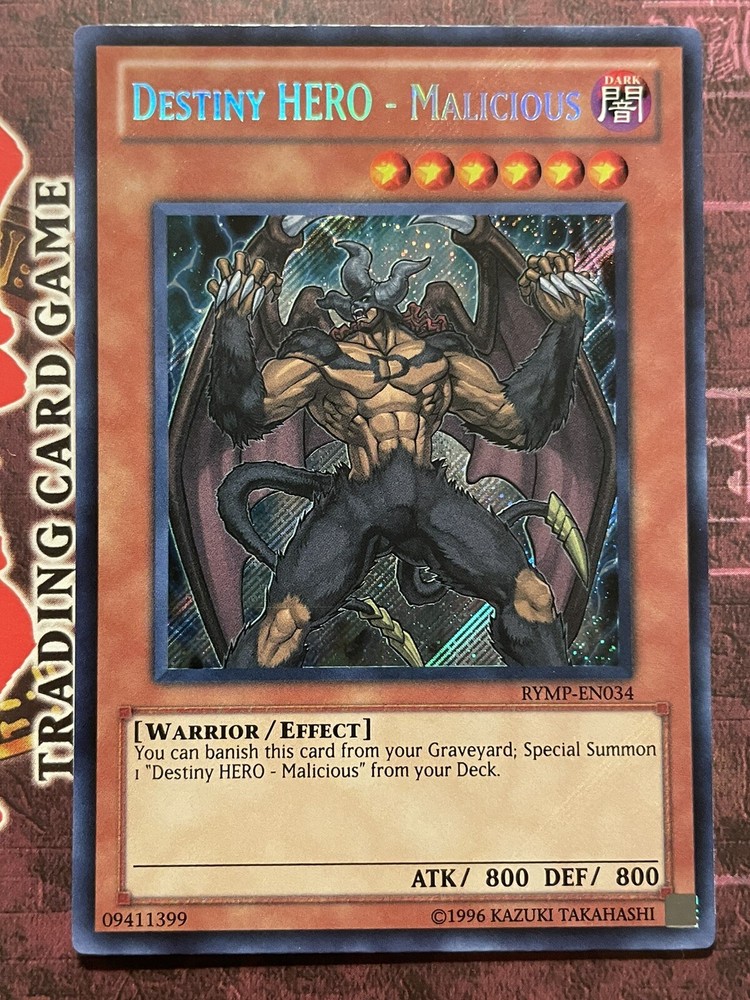 1x Destiny HERO - Malicious (RYMP-EN034) Secret Rare Unlimited Edition. Condition is near mint. Shipped with USPS. Fast shipping with tracking and will be sent in a top loader. Thank you!...