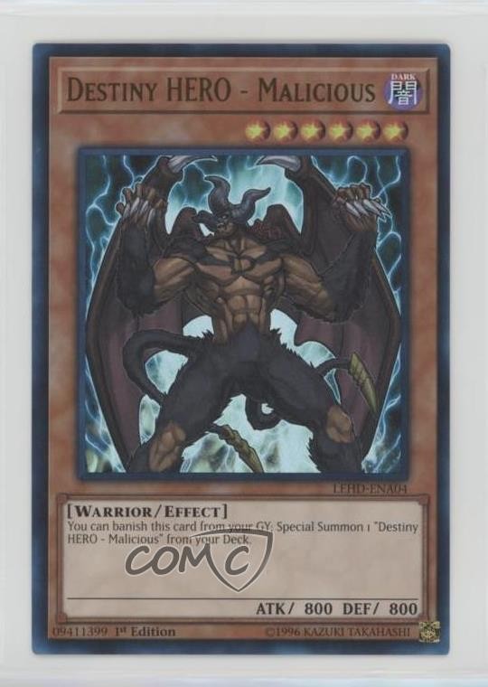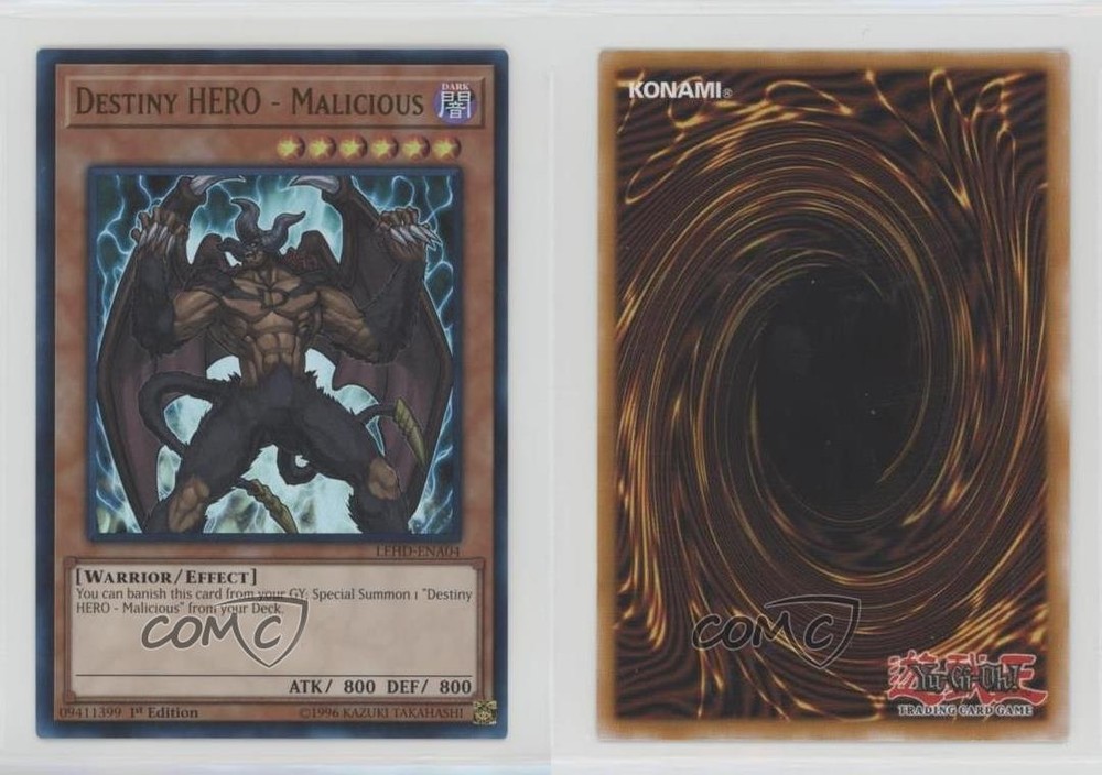 2018 Yu-Gi-Oh! Legendary Hero Decks - [Base] - 1st Edition #LEHD-ENA04 Destiny HERO - Malicious (Semi-limited) COMC Item: 89975057 - YuGiOh Card Search for more: 2018 Yu-Gi-Oh! Legendary Hero Decks Search for more: 2018 Yu-Gi-Oh! Legendary Hero Decks - [Base] - 1st Edition View all of our Listings Auctions Buy It Now About Us Located in the beautiful Pacific Northwest, COMC (Check Out My Cards) is the world's largest consignment service for trading card singles. More than 10,000 people have used our consignment service to list over 50 million trading cards. Find out how we can help you consign your items on eBay by contacting us through eBay messaging. COMC -- "The Safe & Easy Way to Buy & Sell" Raw Condition for Modern Cards Unless otherwise noted, raw modern cards are listed in Near Mint-Mint condition or better. A NM-MT card appears to be Mint at first glance, but upon closer inspection, may exhibit some of the following: minor print defects (e.g. roller marks, print line, dimple), minor scratches, slight edge wear, and slight corner wear. Centering is clearly visible in the images provided and does not factor into our condition assessment. Raw Condition for Vintage Cards Unless otherwise noted, raw vintage cards are listed in Excellent condition or better. An EX card may exhibit some of the following: minor rounding of corners, surface wear, print defects, light scratches, and slight edge wear/chipping. Centering is clearly visible in the images provided and does not factor into our condition assessment. Domestic Shipping Combined shipping for multiple items is available. To receive combined shipping, please ensure all desired items are in your eBay shopping cart before proceeding to checkout. eBay limits orders to 40 items per order. We automatically combine multiple orders placed on the same day. If you place multiple orders on the same day, please contact us to request a refund of applicable shipping costs. Signature confirmation may be required on invoices over $400. All cards are protected and shipped securely. International Shipping COMC offers eBay's International Shipping (EIS) for international orders under $2,500* (see country exceptions below). All duties and import fees are paid at checkout; in the rare event that there are additional import fees upon delivery, these are borne by the buyer. EIS packages route through a shipping hub in Erlanger, KY before shipping to their final destination. Please note that EIS does not allow for combined shipments. The shipping rates are determined by eBay and cannot be adjusted. *Maximum sale price exceptions: Colombia, Kuwait ($2,000); Taiwan ($1,539); Chile, Costa Rica, Guatemala, Honduras, Trinidad and Tobago ($1,000); Antigua and Barbuda, Aruba, Belize, Dominica, Grenada, Philippines, Saint Kitts and Nevis, Saint Lucia, Montserrat, Turks and Caicos Islands ($500); Dominican Republic, El Salvador ($200). Please request a shipping quote through eBay messaging for orders that exceed the maximum sale price supported by eBay's International Shipping. You will be responsible for all duties and import fees for international orders shipped outside the EIS. All cards are protected and shipped securely. Payment COMC does not accept offers on our cards through our eBay storefront. COMC utilizes eBay’s managed payments system. If you are experiencing difficulties making a payment, please contact eBay for assistance. Return Policy Returns are only accepted on the rare occasion the item is not as described. If you are making a return, please initiate the return process through eBay so a mailing label can be provided for you. Prior to listing, our expert team carefully assessed this item to represent it accurately. Please review the description and high-definition images prior to purchasing to ensure this item meets your satisfaction. We welcome you to contact us if you have further questions about this item. Trust and Integrity COMC carefully assesses each item consigned to us to prevent fraudulent items from entering the marketplace. If you believe an item offered on COMC may be fraudulent, please contact us with details so we can investigate the issue. Items we determine are outside our supported items policy may be removed. Last Modified: 5/30/2025 11:44:07 PM PDT