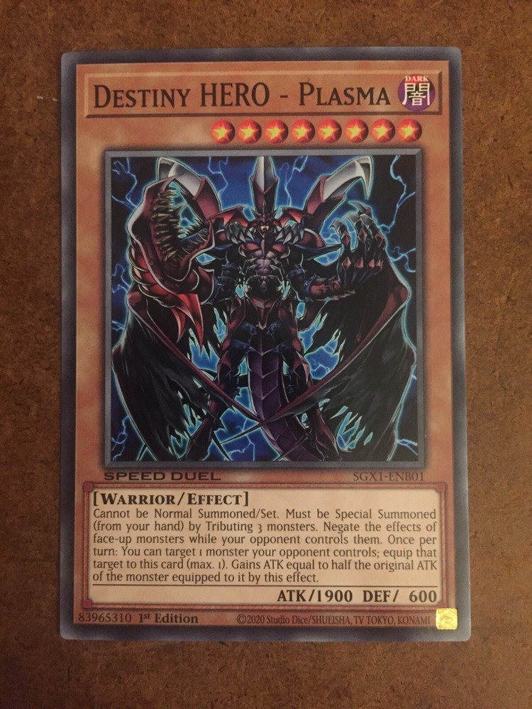 Card is in very good condition Destiny HERO Plasma SGX1-ENB01 Yugioh Card Speed Duel Academy.