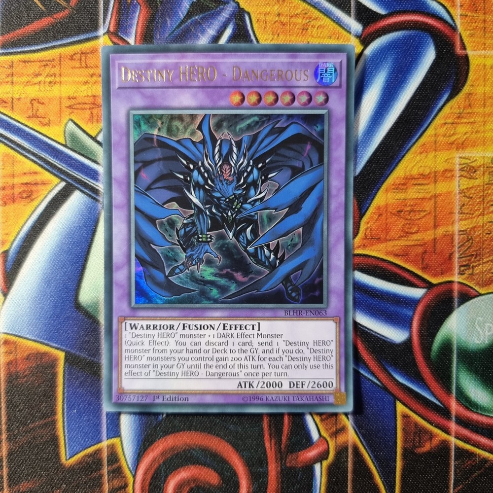 Destiny Hero - Dangerous - BLHR-EN063 - 1st Edition - Ultra - Yugioh. Condition is Ungraded. Dispatched with Royal Mail 2nd Class....