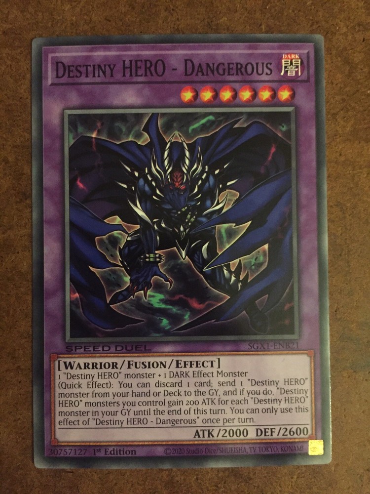 Card is in very good condition Destiny Hero Dangerous SGX1-ENB21 Yugioh Trading Card Speed Duel Academy.