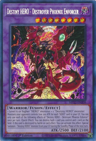 Selling Destiny Hero - Destroyer Phoenix Enforcer MP22-EN209 Prismatic Secret Rare 1st Edition Will be delivered in a sleeved, in a top loader card protector. Message me with any inquiries. Excellent Rated Seller Feedback. Our images for non-damaged cards are stock photos from a database and will not represent the exact card you ordered. If the Image Does not match the listing title (edition, rarity or variation) please just message and I will confirm for you. If you require any additional photos please also just ask as I will be happy to help. Condition is "Good Condition", unless stated otherwise. If you require clarification of the condition of the exact card you're ordering, please enquire.