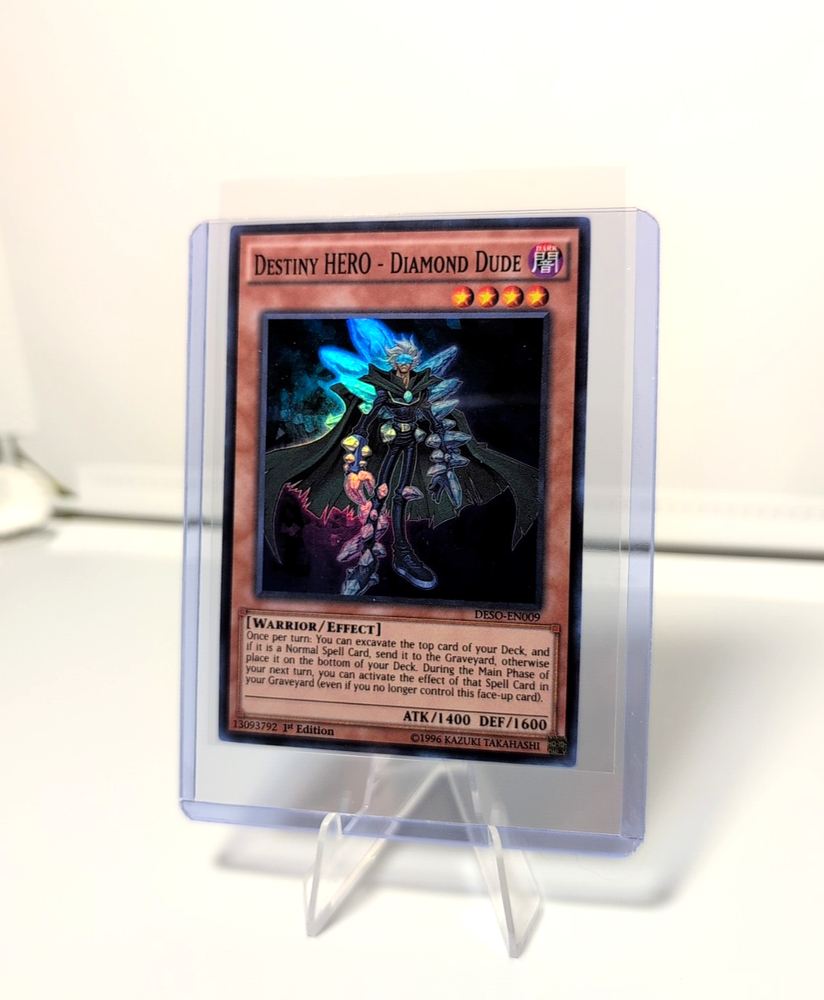 Dive into the captivating world of Yu-Gi-Oh! with the rare card "Destiny Hero - Diamond Dude." This premier edition, referenced DESO-EN009, is a must-have for collectors and card game strategists. Produced by Konami, this Hero collectible boasts impressive attack power with 1400 points, balanced by a robust defense of 1600 points. The "Destiny Hero - Diamond Dude" card stands out for its special effect, adding a dynamic dimension to your game. In addition, it is rated by professionals as a rare edition, guaranteeing its prestige and value in the world of the Yu-Gi-Oh! TCG. For English fans, this card is an excellent addition to any collection, bringing power and finesse to your deck. Trace of wear on the card. The best way to be satisfied with the products will always be to look at the photos carefully. All products are inspected and verified as far as possible without damaging the original packaging. By default, shipments are untracked and made via Canada Post, unless otherwise specified. Delivery time depends on Canada Post. International delays will take longer, thank you for your patience. Handling and shipping are completed within two business days, except in the case of statutory vacations or other exceptions. All cards are checked and inspected. However, if there is an error in the description or in the specifications, please inform me and this error will be corrected as soon as possible. Thank you for your understanding. Sold as is, see photos If you have any questions please do not hesitate to contact me. Happy shopping!!! Tout les produits sont inspectés et vérifiés dans la mesure du possible sans endommagé l'emballage d'origine. Par défaut les envois sont sans suivi et effectué via Poste Canada au moyen d'enveloppe, a moins de mention contraire. Le délai de livraison dépend donc de Poste Canada. Les délais internationnaux vont prendre plus de temps, merci pour votre patience. Le délai de manutention et d'envoi s'effectue en deux jour ouvrable, sauf en cas de congé férié ou autre cas d'exception. Toutes les cartes sont vérifiées et inspecté. Par contre, s'il y a une erreur dans la description ou dans les caractéristiques, informé moi et cette erreur va être corrigée dans les plus bref délai. Merci de votre compréhension Si vous avez des questions n'hésité pas a me contacter. Bon magasinage!!!