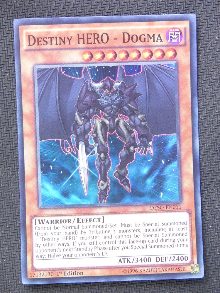 BUY 2, GET 3rd FREE !!! Just add 3 eligible items to basket. Destiny Hero Dogma DESO - Super Rare - Yugioh Card #5N3 Our stock code: STAR03-5N3 Mint / Near Mint - In 'as new' condition. Only pay shipping once no matter how many single cards you order! Offer includes worldwide shipping! If you would like any further information about this item, or have any problems with our products or with our service please get in touch with us - We'll do our best to help!